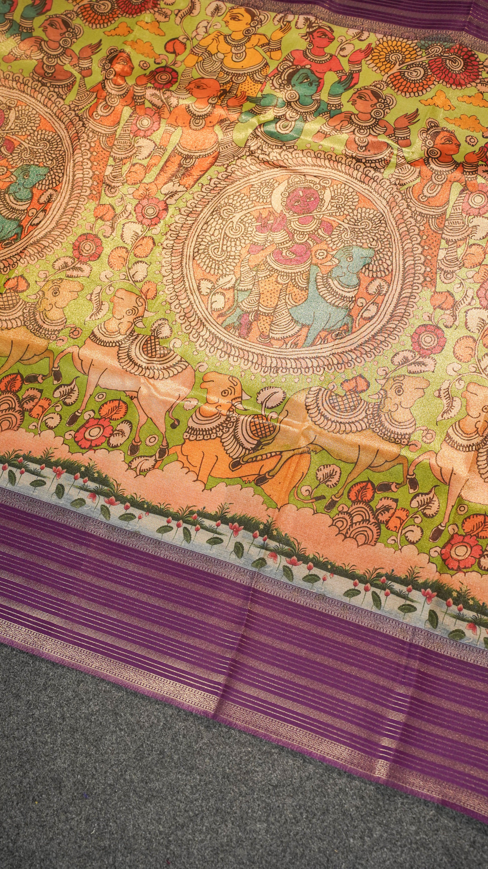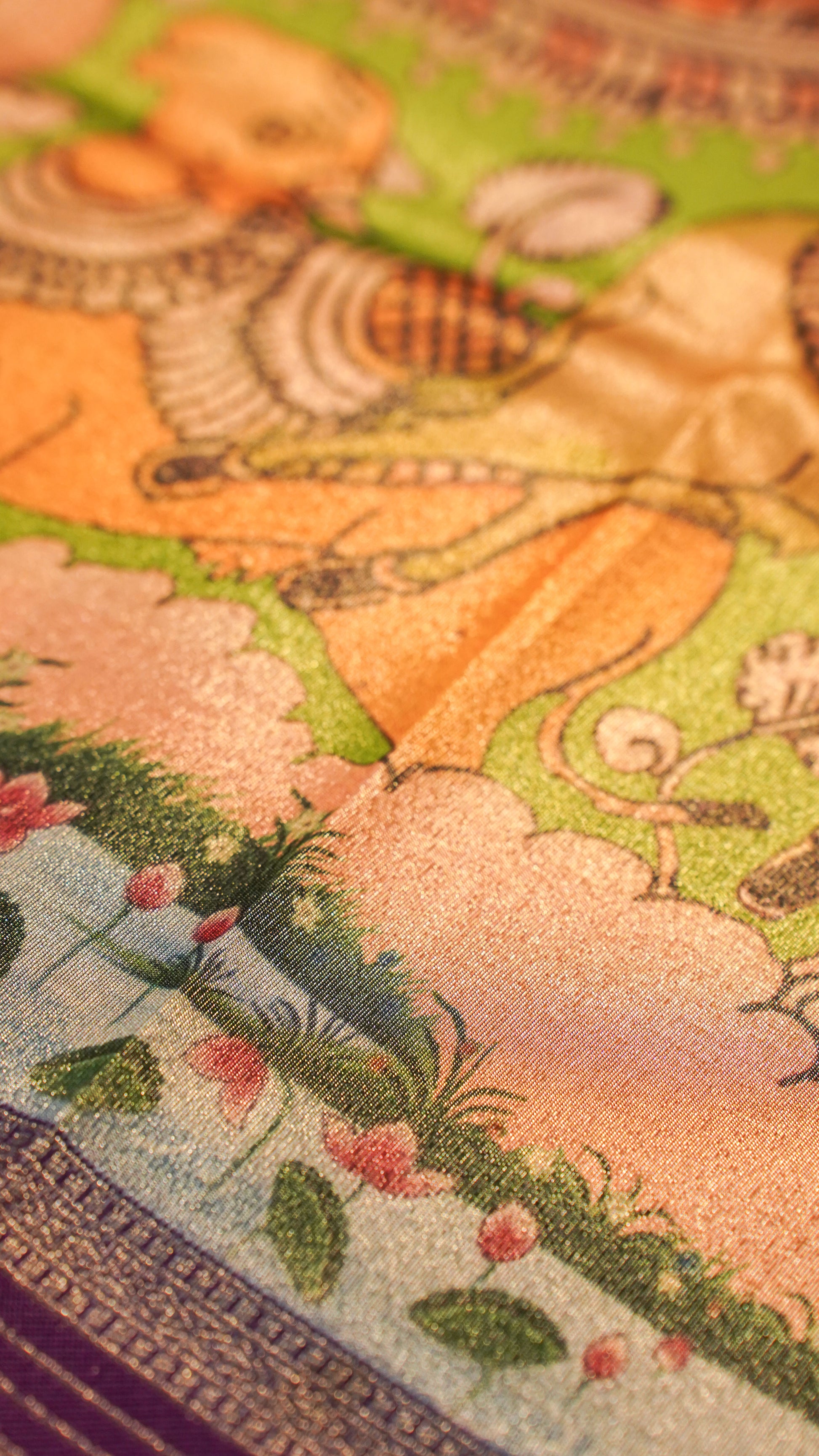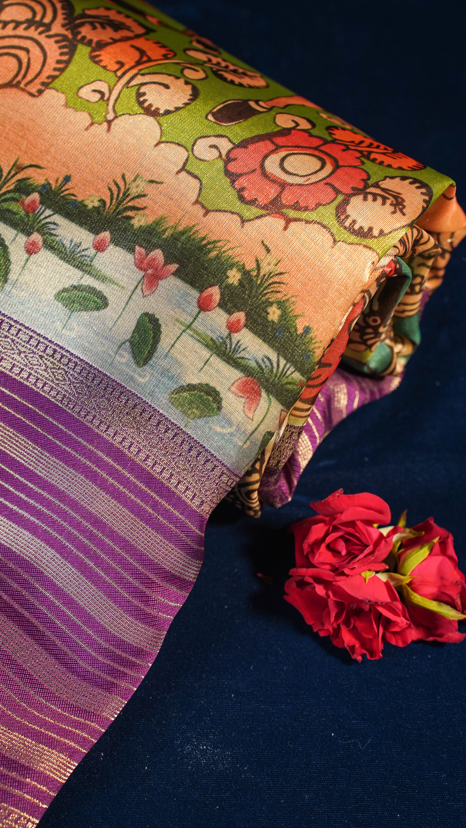 Banarasi Forest Green Digital Print Tissue Silk Saree – Timeless Elegance Meets Contemporary Charm