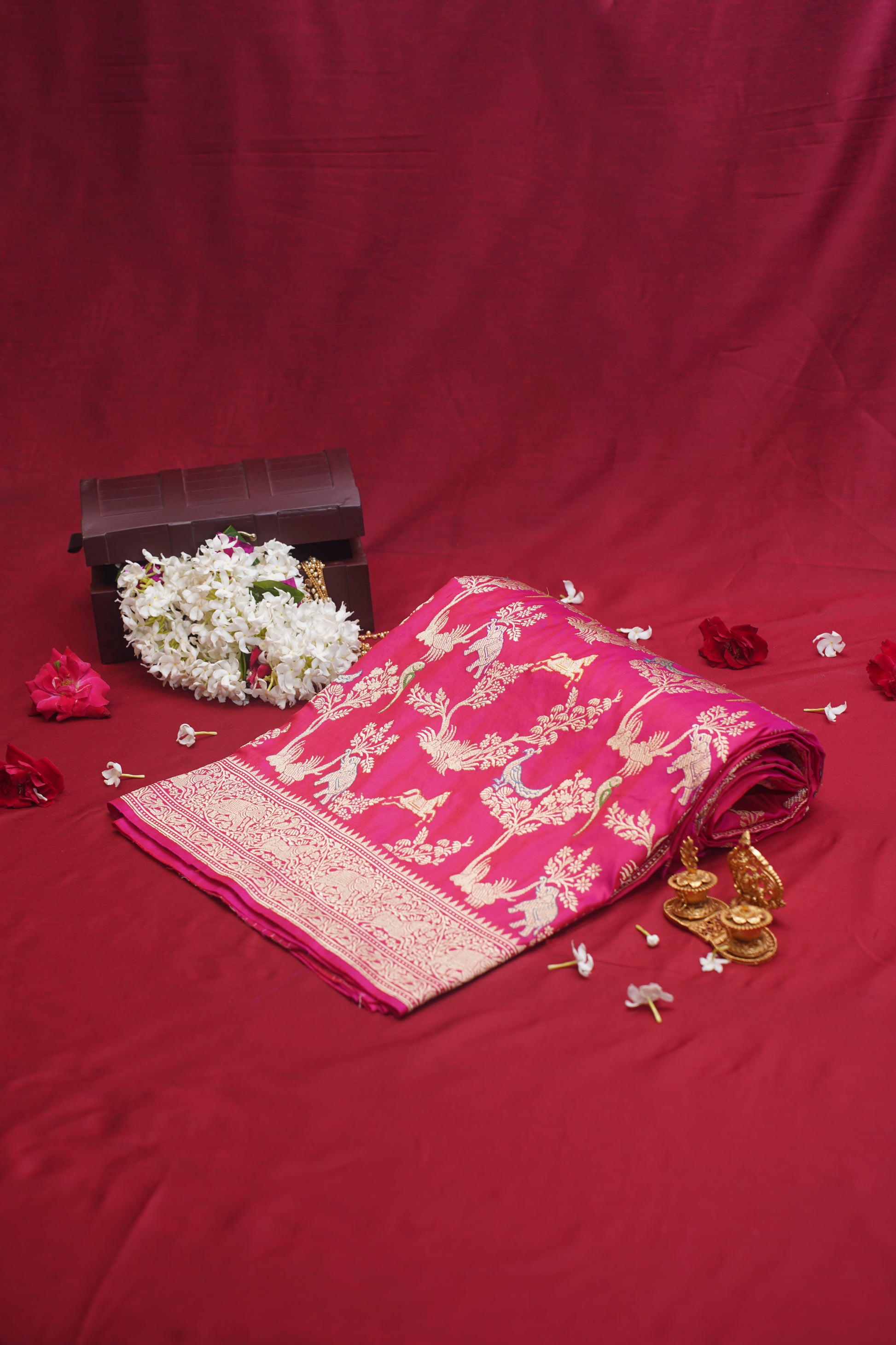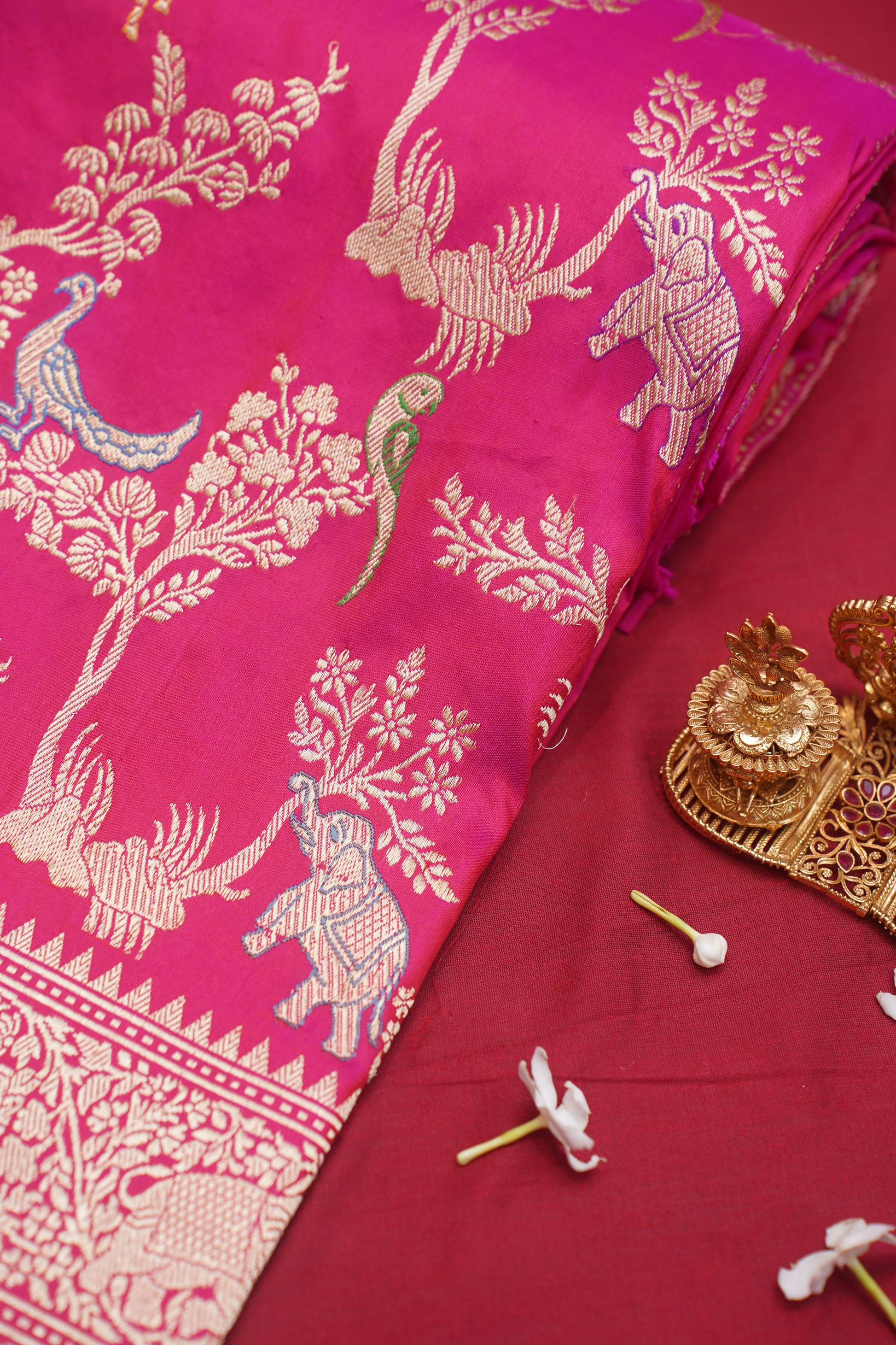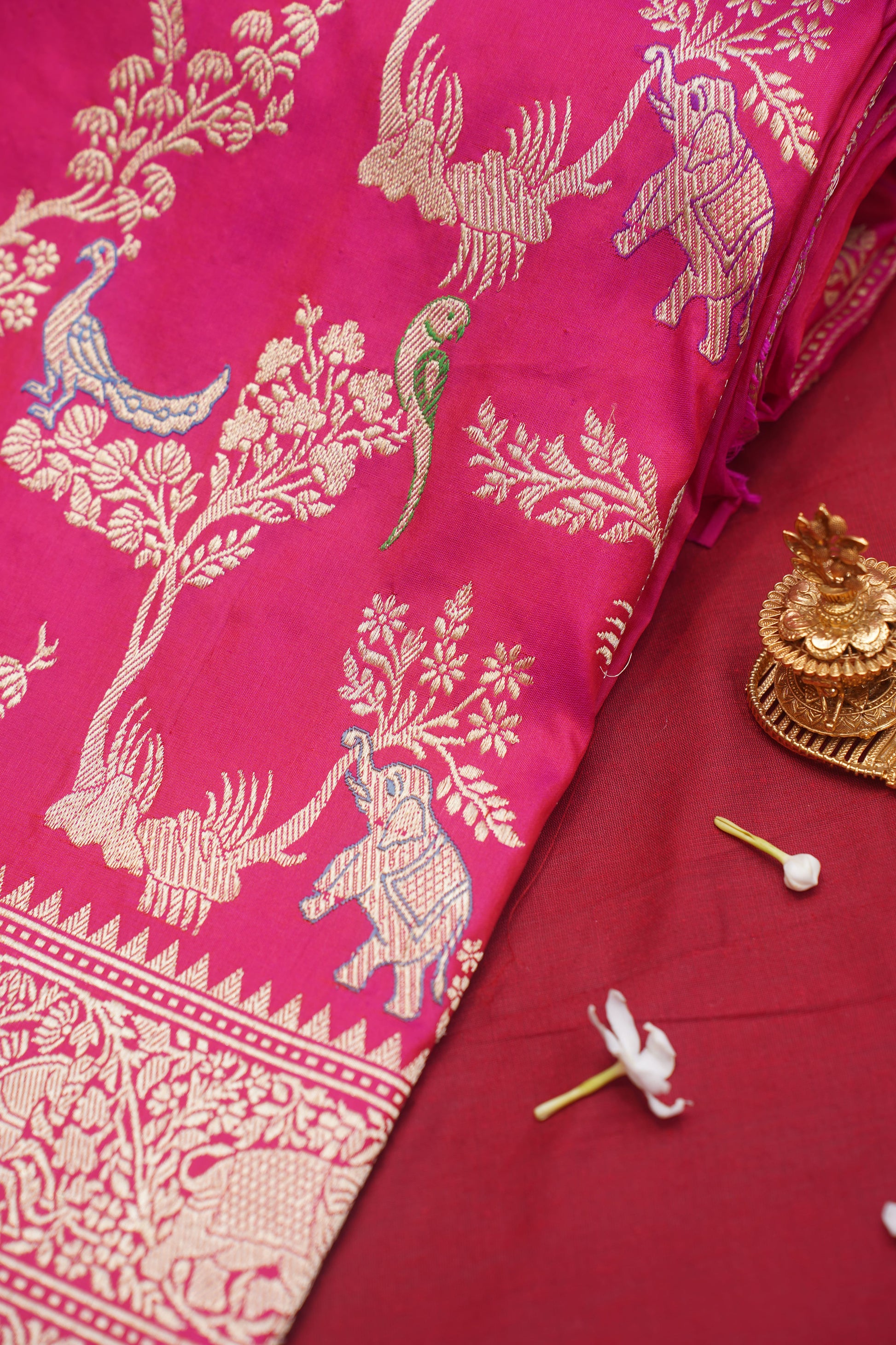 "VIRASAT 002" Dark Pink Pure Kadwa Banarasi Handloom Saree