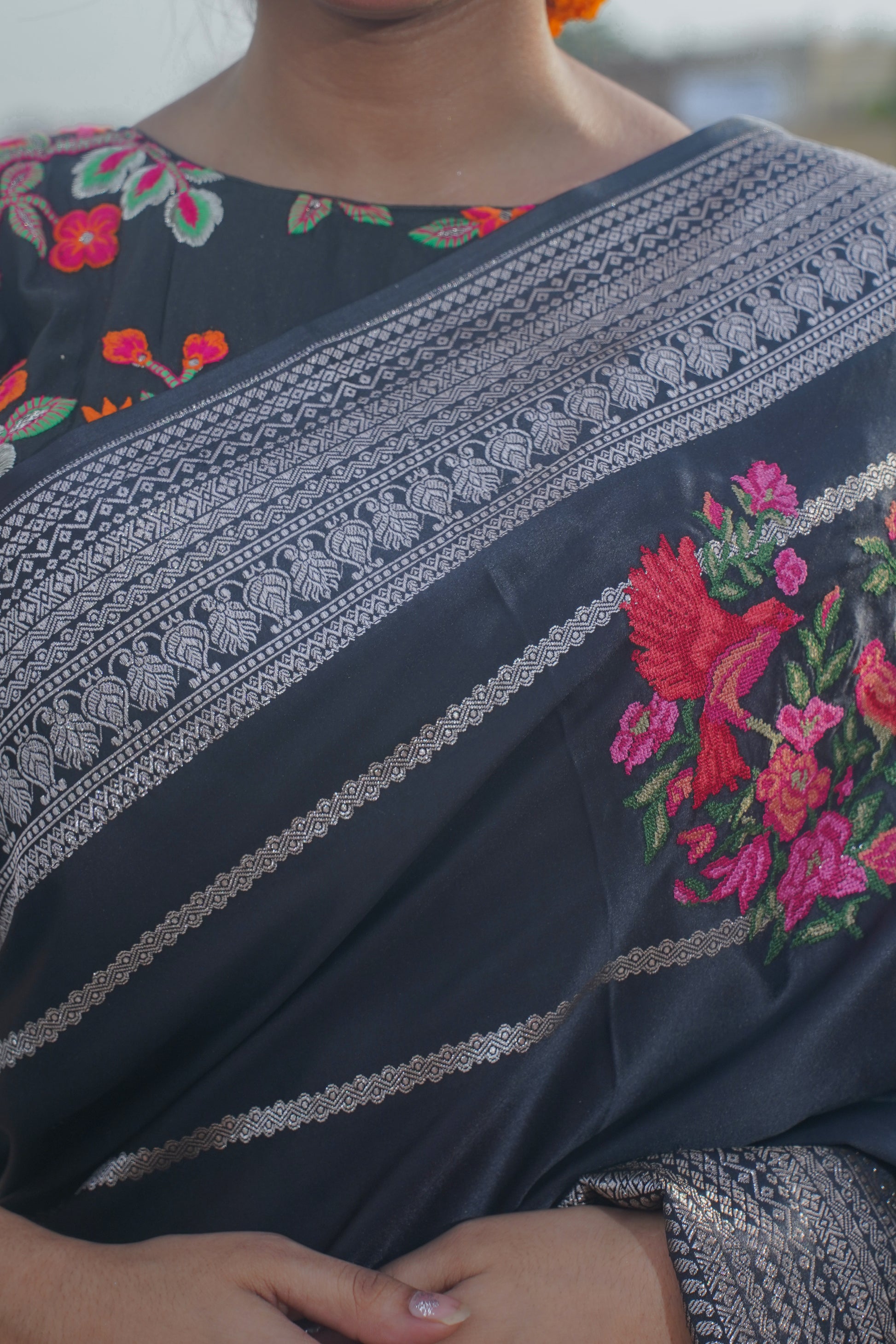 Traditional Banarasi Weaving: Each saree is a unique masterpiece, handwoven by skilled artisans, preserving the traditional Banarasi weaving techniques and ensuring an authentic piece.