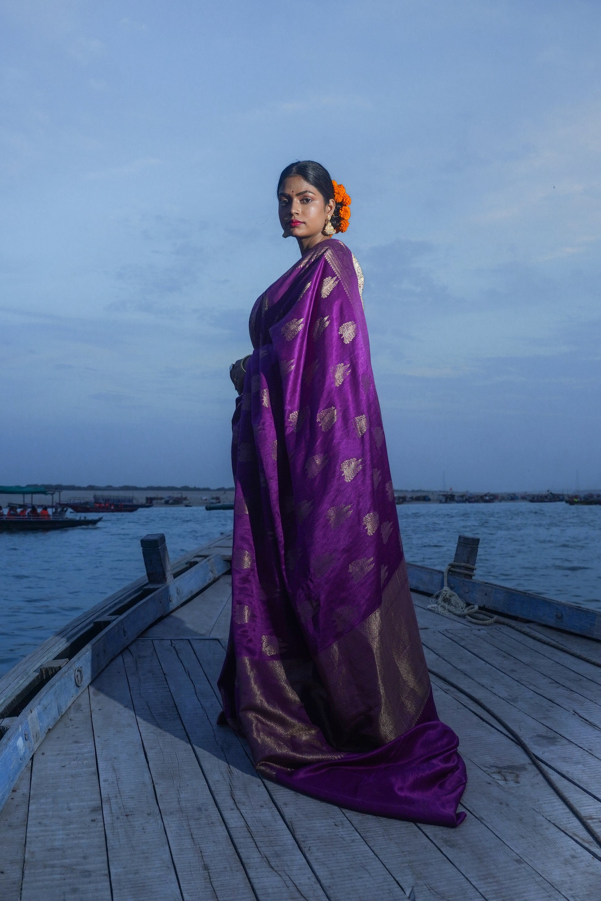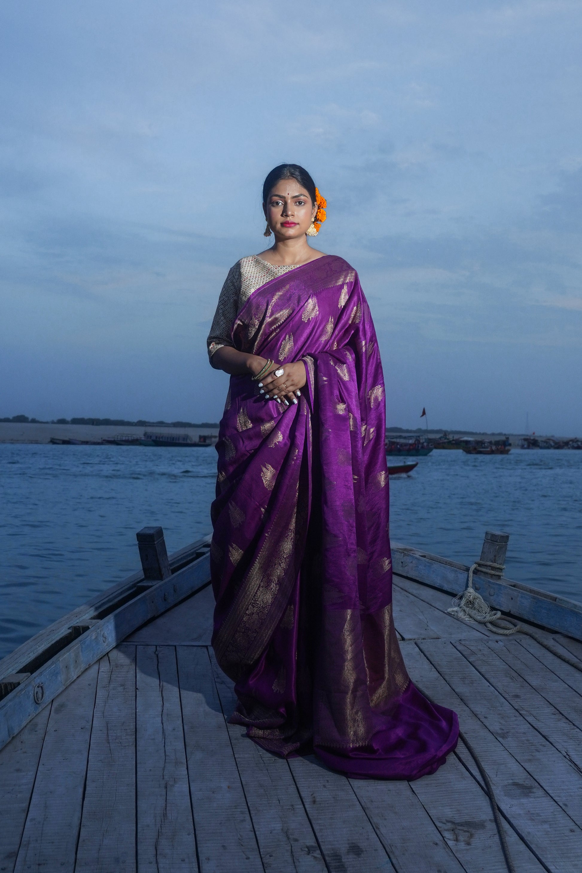 Traditional Banarasi Weaving: Each saree is a unique masterpiece, meticulously handwoven by skilled artisans, preserving the traditional Banarasi weaving techniques and ensuring an authentic piece.