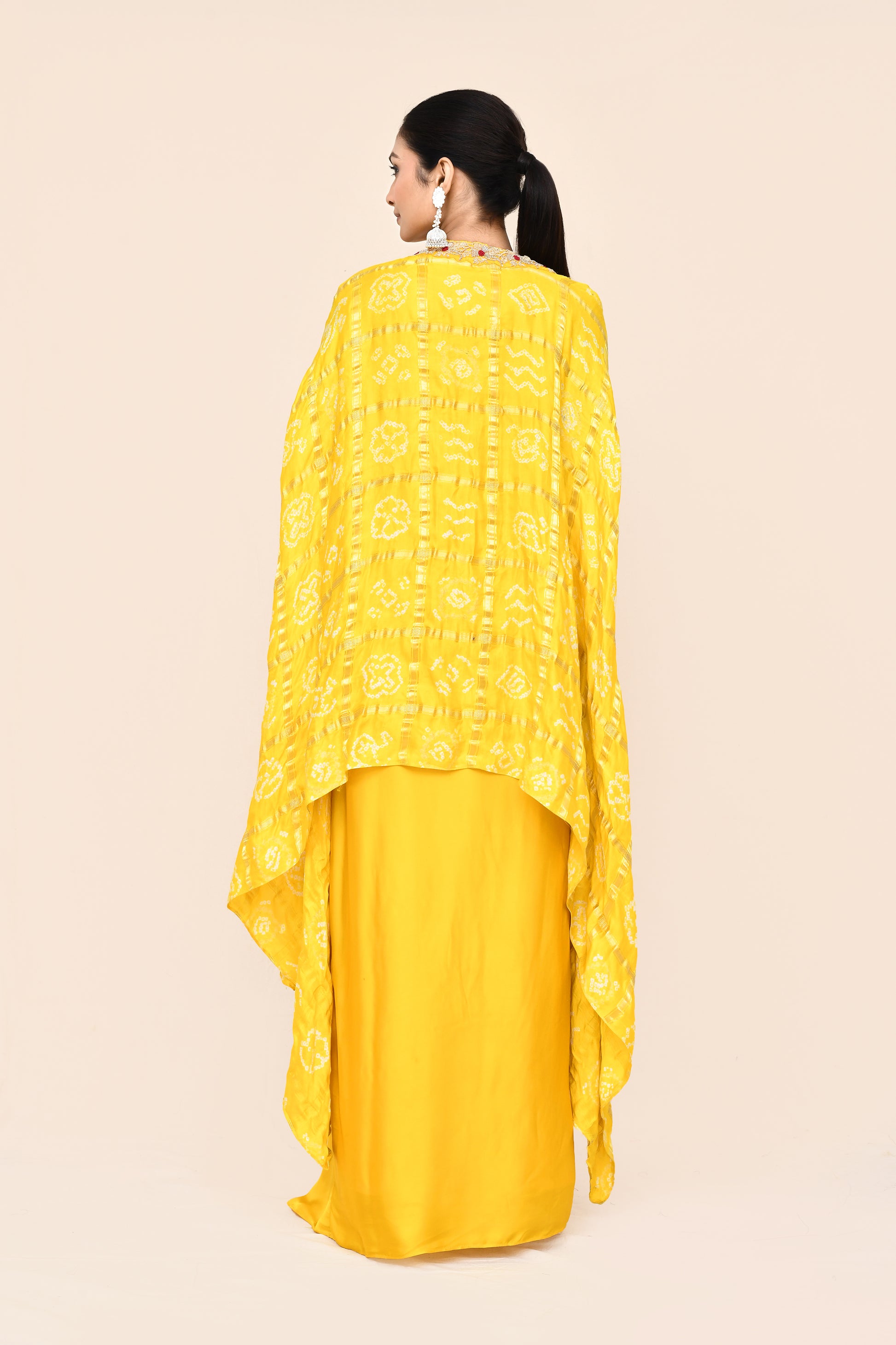 The vibrant yellow hue symbolizes positivity, prosperity, and celebration, making it perfect for festive occasions, weddings, and cultural events. The flowy drape of Gajji silk enhances your silhouette, offering both comfort and grandeur. Intricate detailing and fine craftsmanship further accentuate its regal appeal, making "Jagruti" a statement piece for every elegant woman.