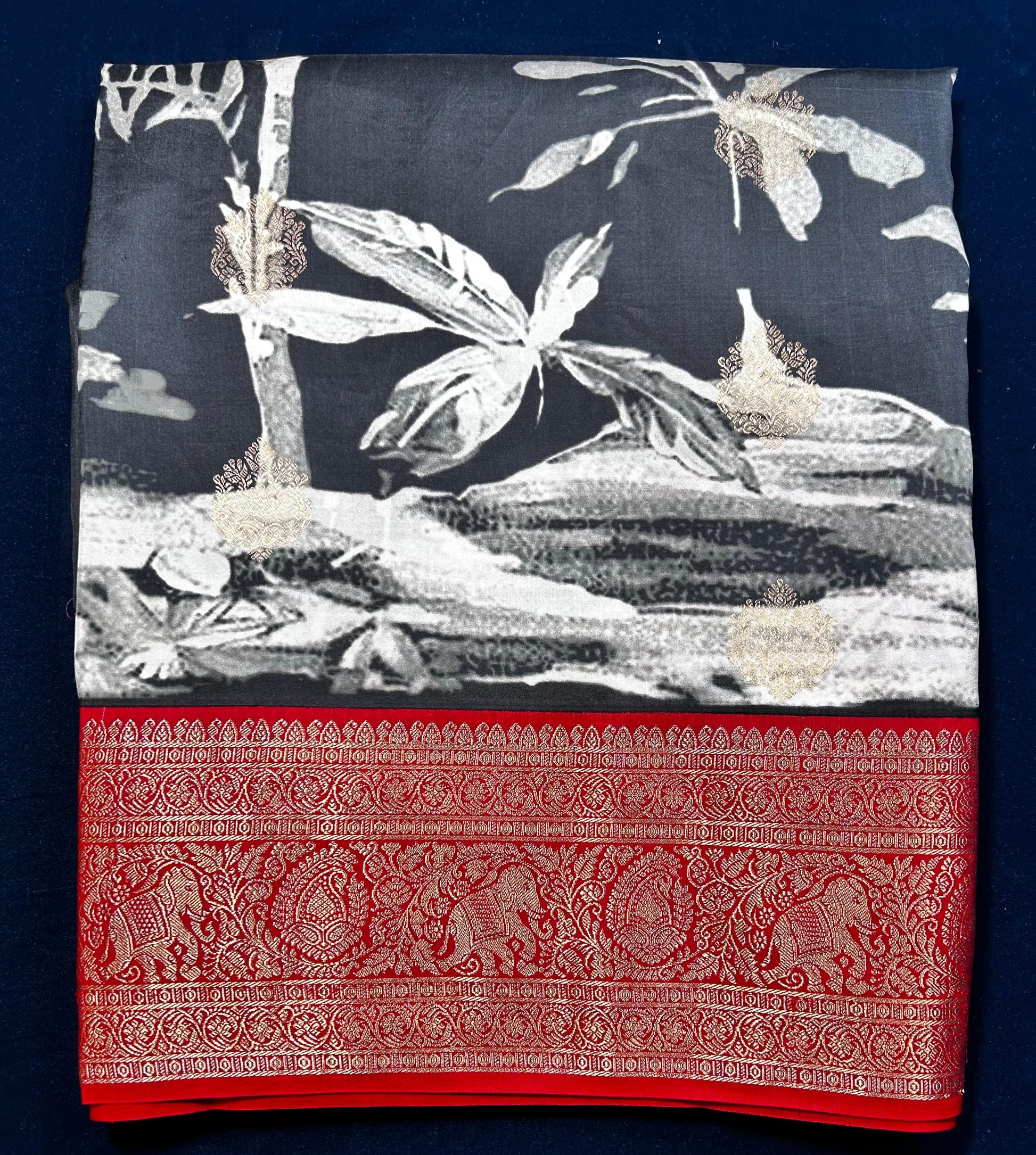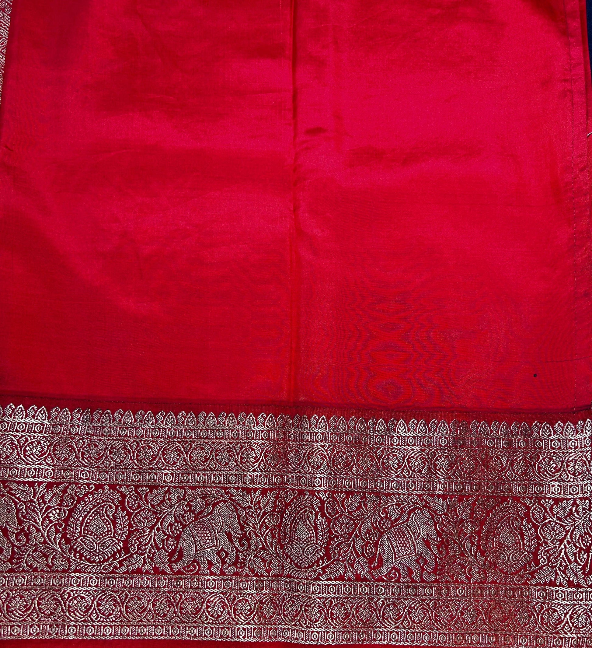 Today, in our heritage collection, we present Kajal, a perfect saree crafted from pure handloom silk featuring a distinctive Kandeel border. This saree is a unique fusion of handloom weaving and painting, creating a masterpiece that stands apart. The intricate print and vibrant colors make Kajal a statement piece in our collection, reflecting a blend of tradition and contemporary artistry.