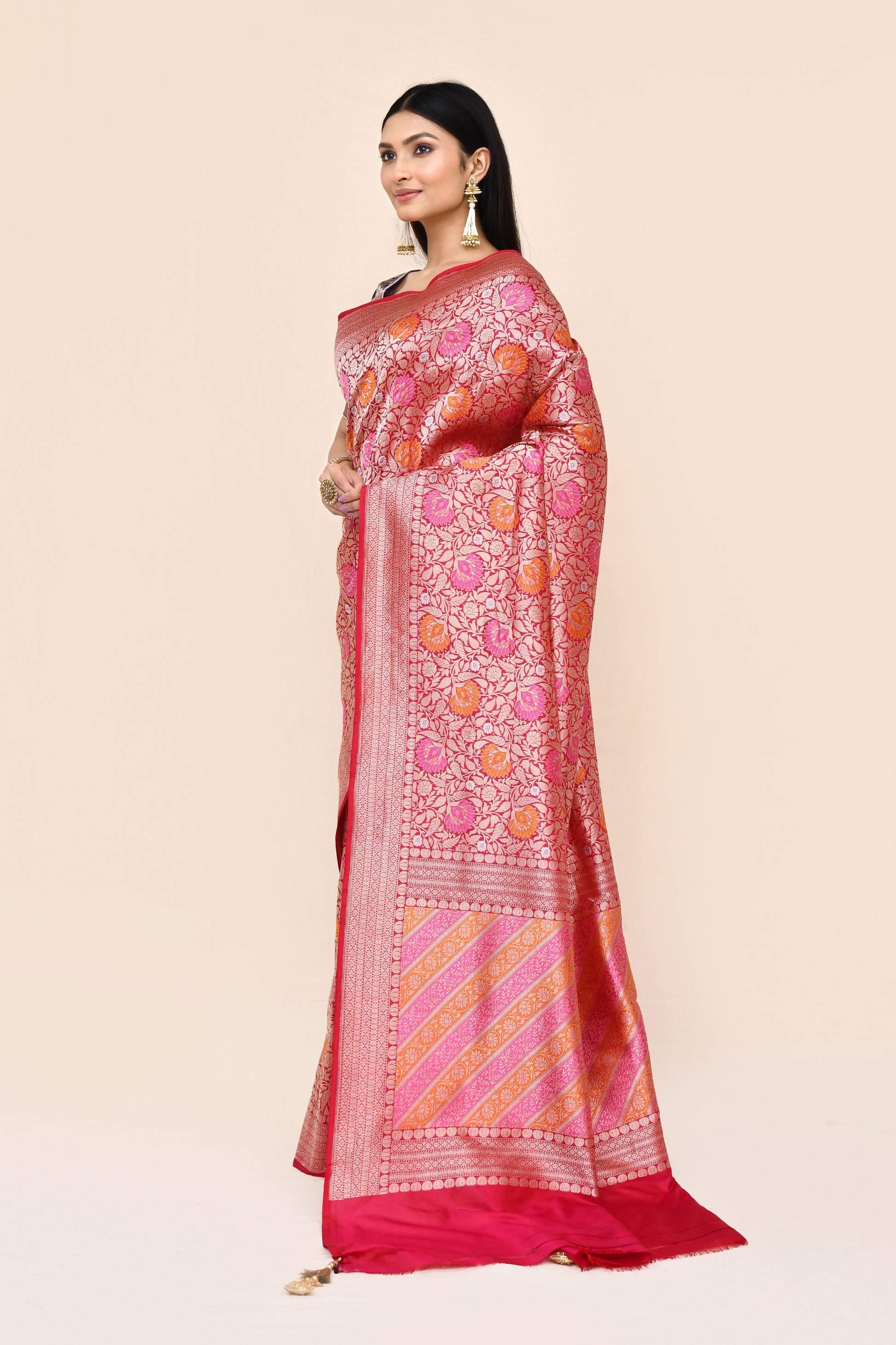 Mahapunya Pure Banarasi Silk Handloom Saree With Meenakari Work