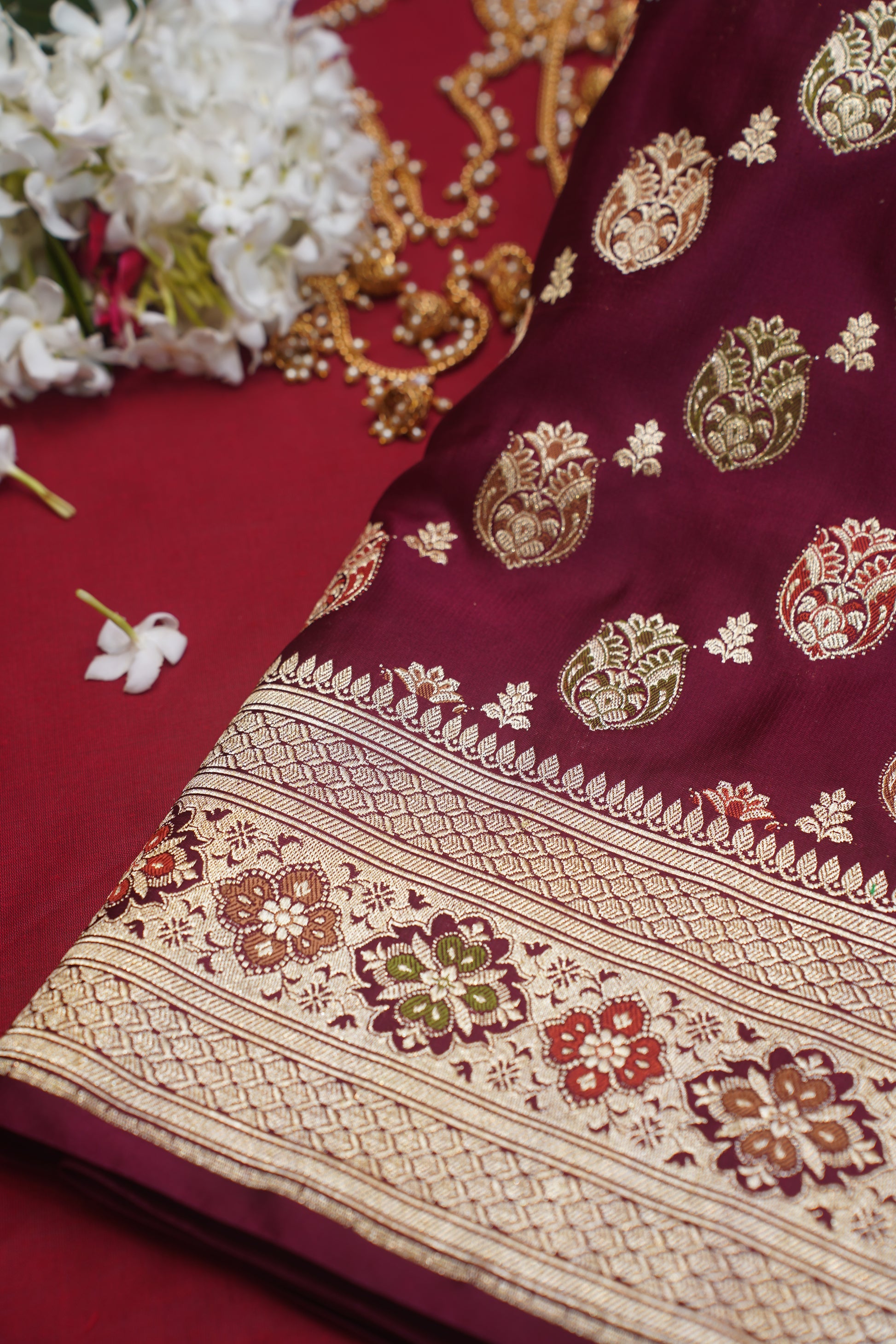 "VIRASAT 106" Maroon Pure Kadwa Banarasi Handloom Wedding Saree