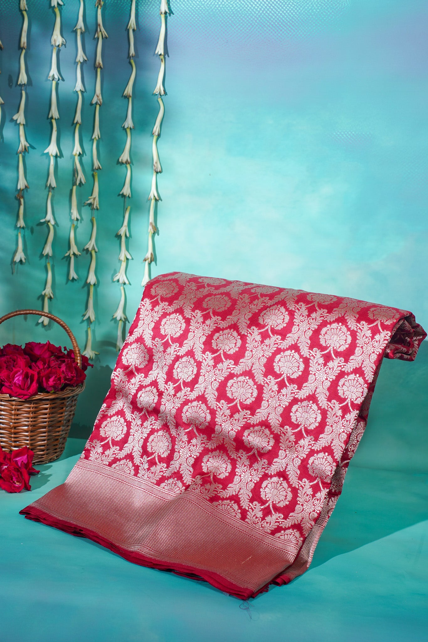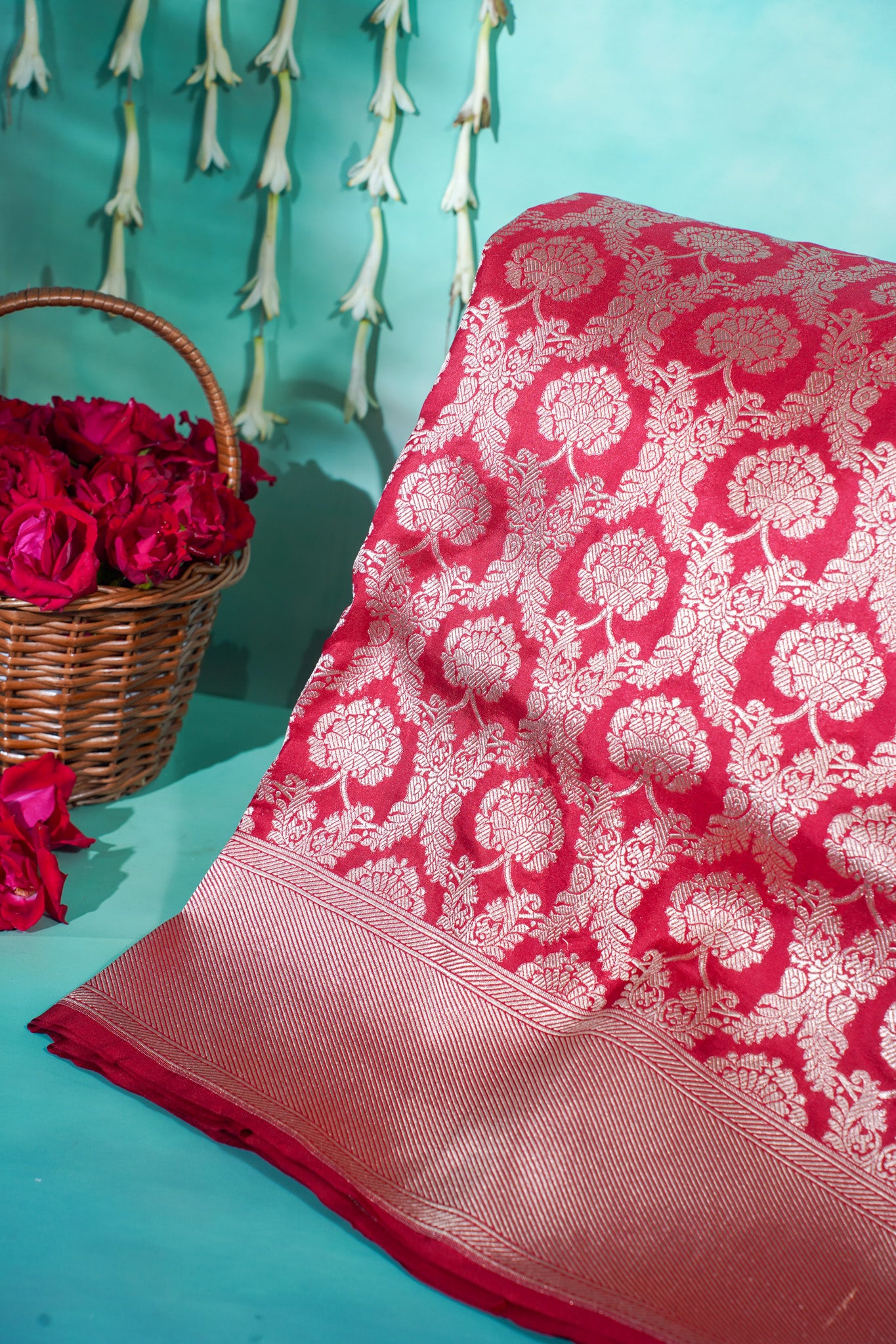 Experience the grandeur of traditional craftsmanship with our Nita Ambani Handwoven Banarasi Jaal Silk Saree – a true symbol of luxury and heritage.