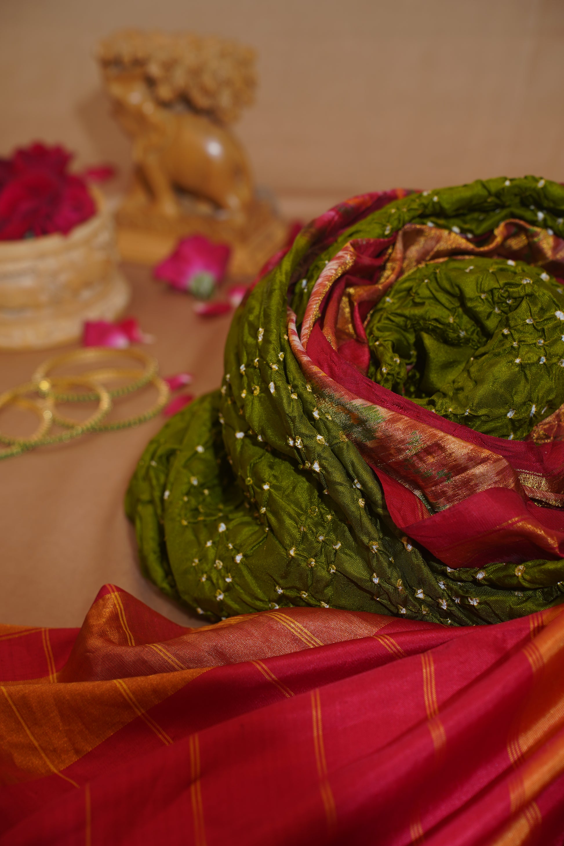 "VIRASAT 114" Olive Green Pure Ikkat Patola Bandhej Handloom Saree
