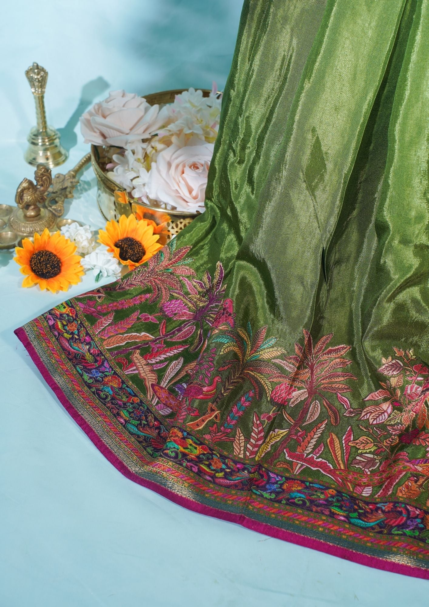 "Waah Banaras 078" Banarasi Green Meenakari Pashmina Silk Saree