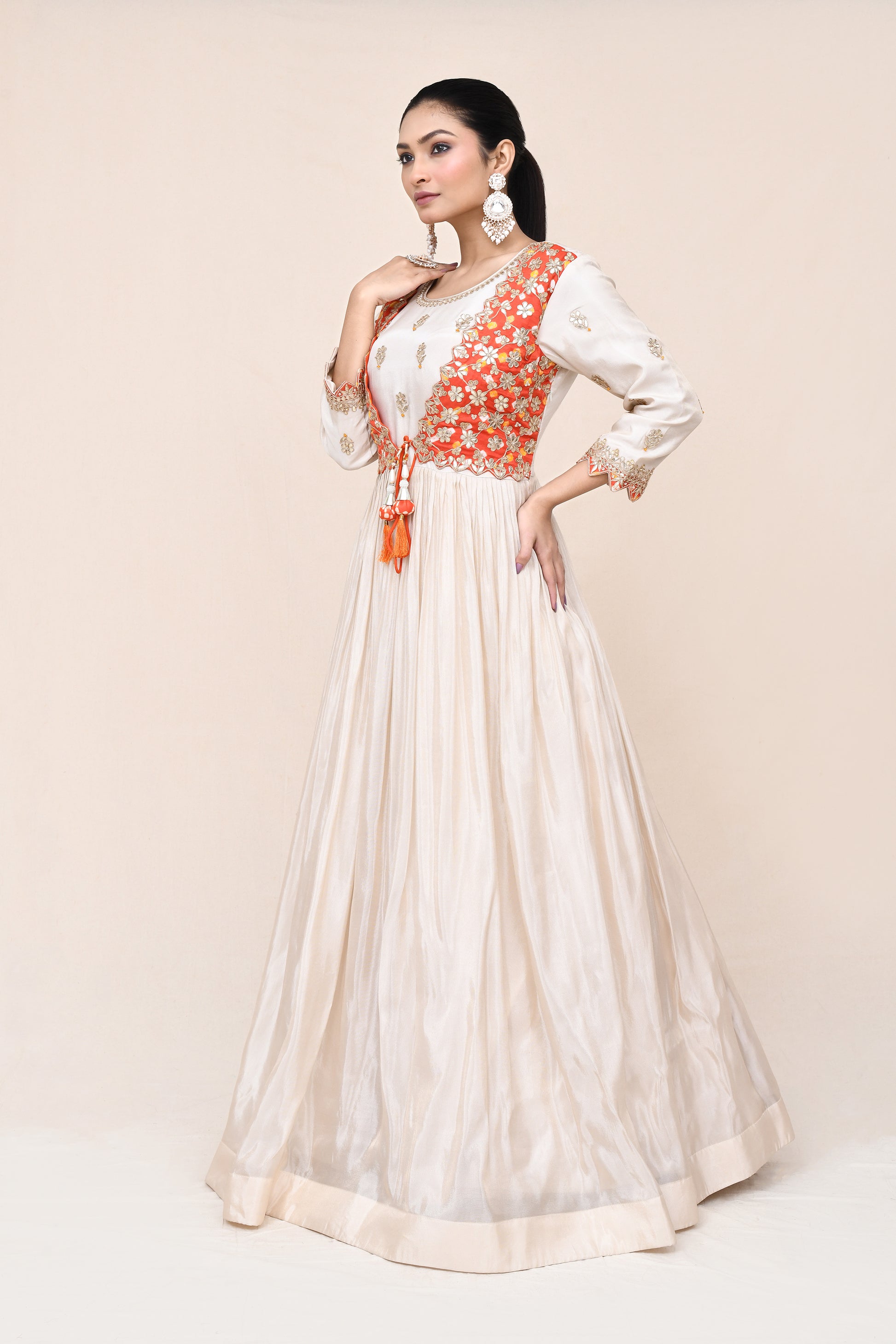 "Rakta" Pure Off White Tissue Silk Gota Patti Work Gown