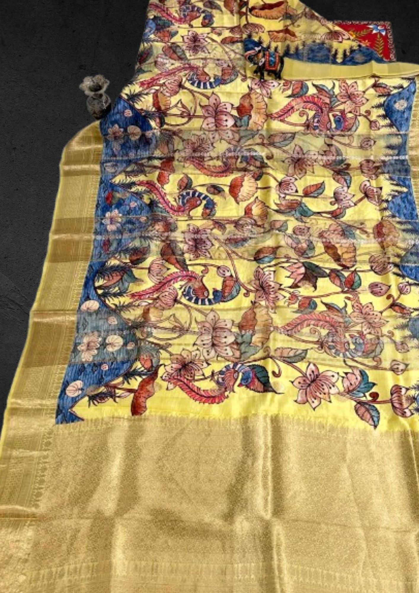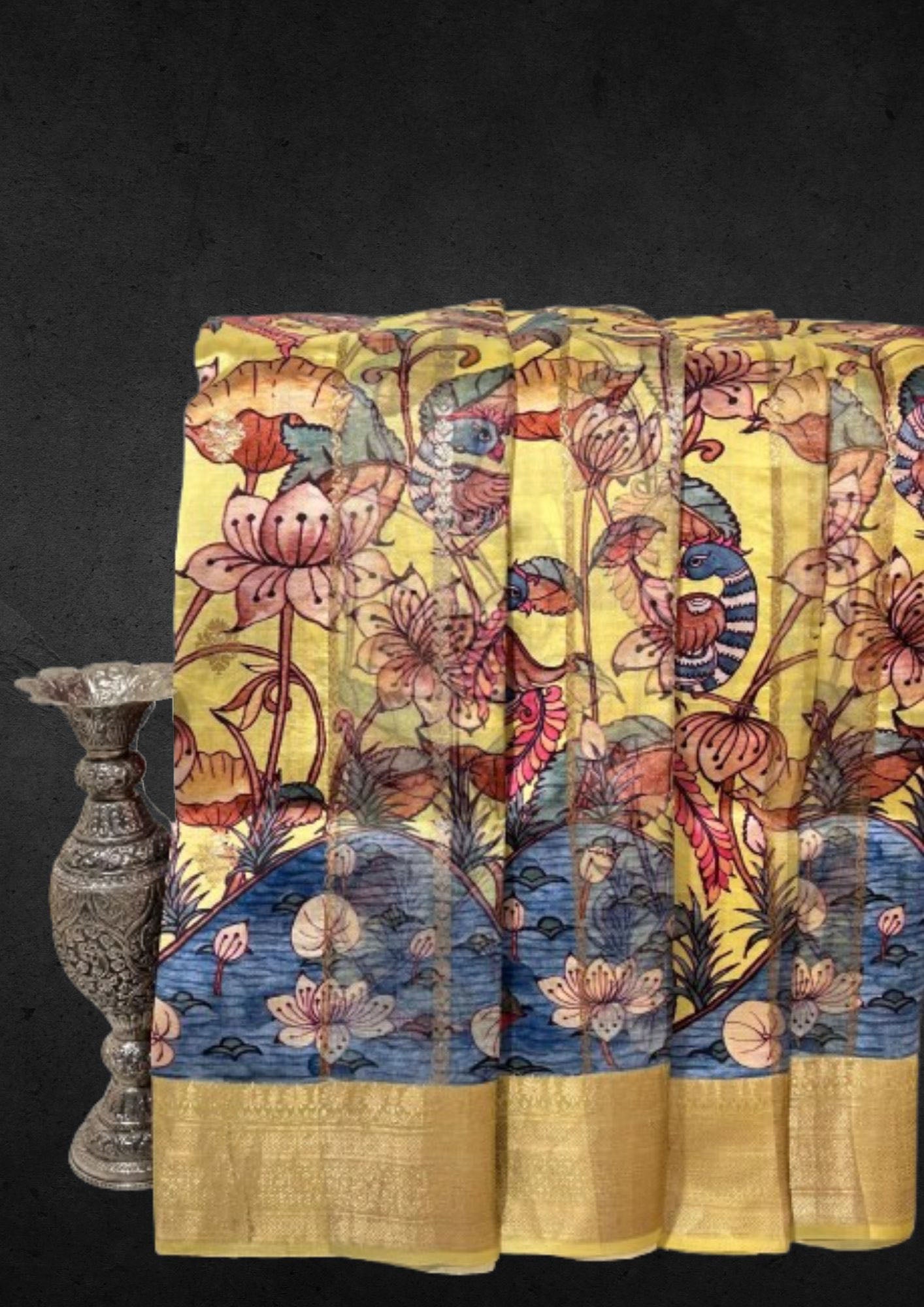 Rangrasiya "Pure Mango Raw Silk With Pure Zari Kadwa Work In Vibrant Color Fusion"