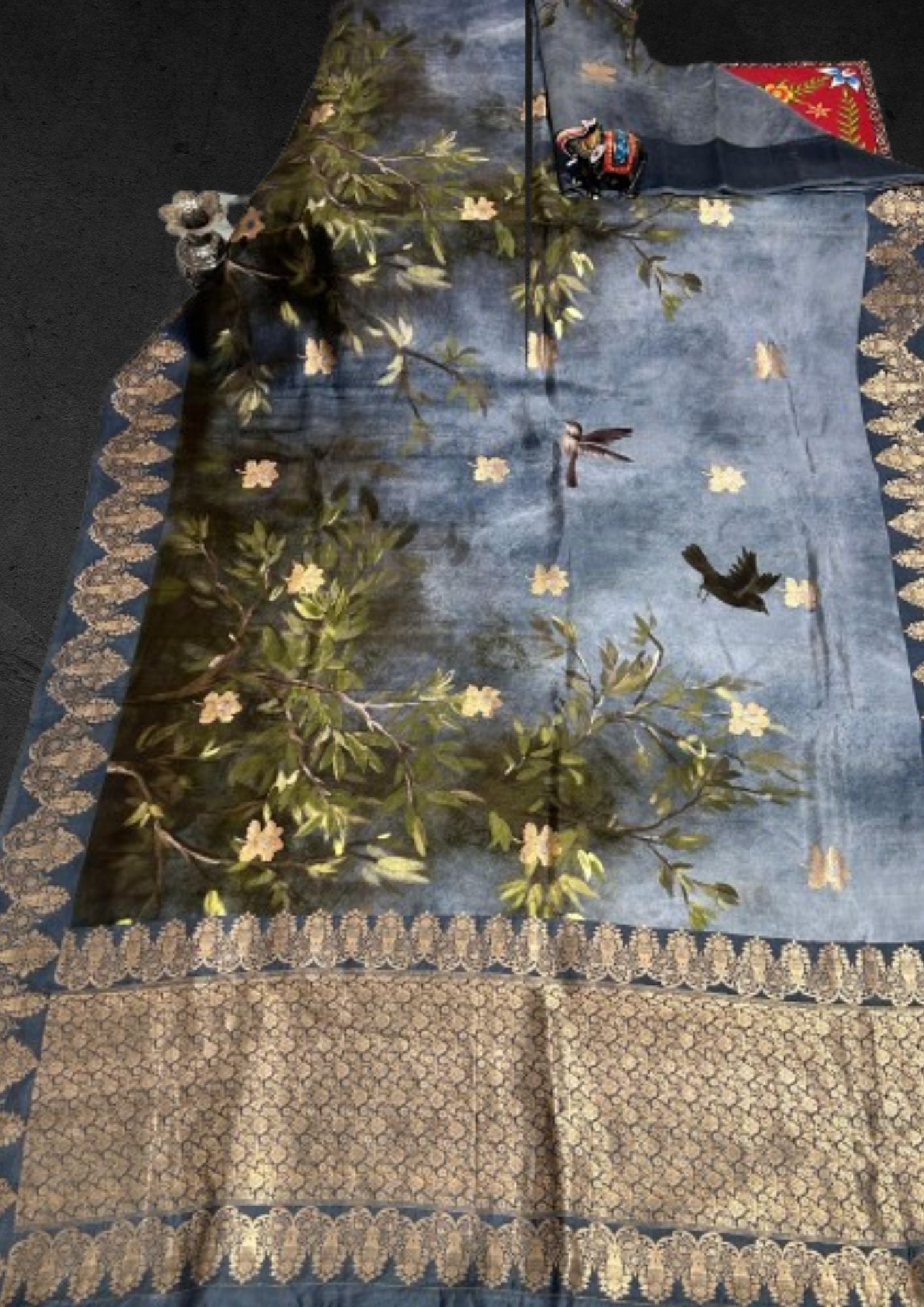 Immerse yourself in the rich heritage and artistic excellence that defines true Indian craftsmanship with this stunning Rangrasiya saree.