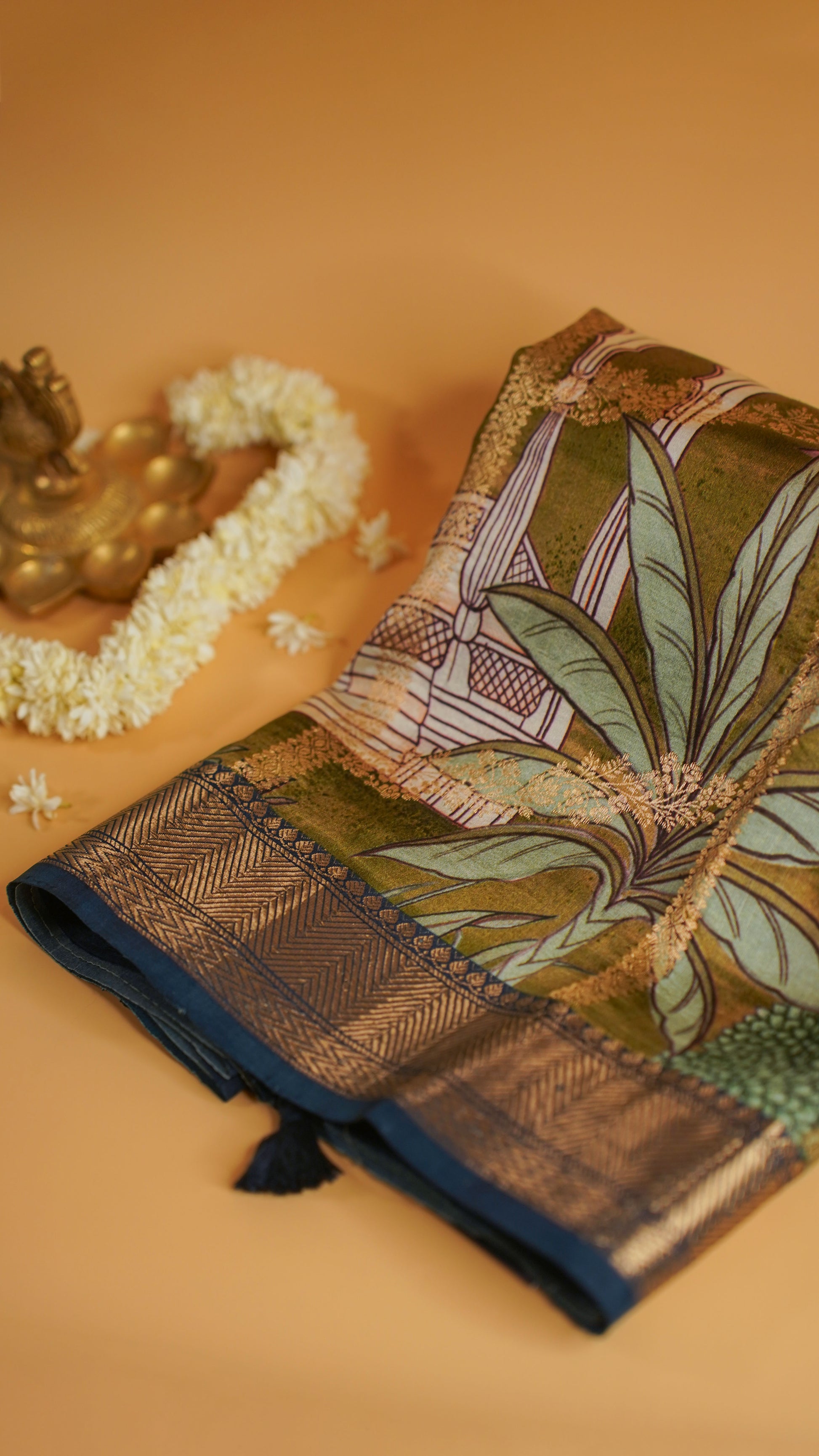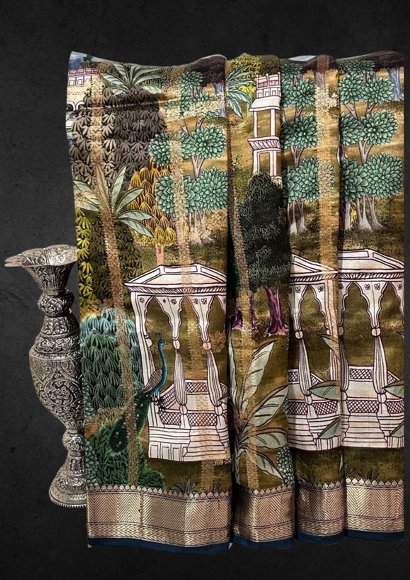 Rangrasiya "Pure Mango Raw Silk With Pure Zari Kadwa Work In Vibrant Color Fusion"