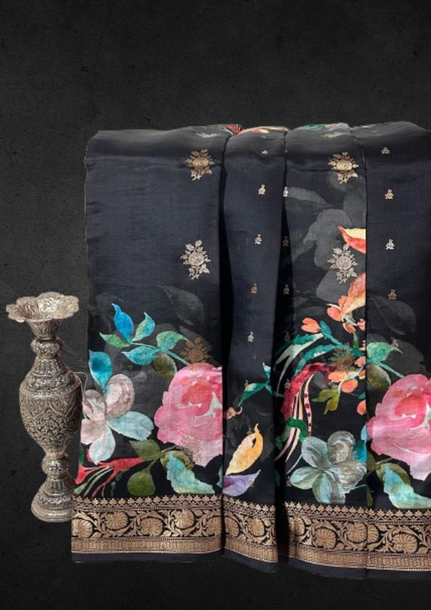 Immerse yourself in the rich heritage and artistic excellence that defines true Indian craftsmanship with this stunning Rangrasiya saree.
