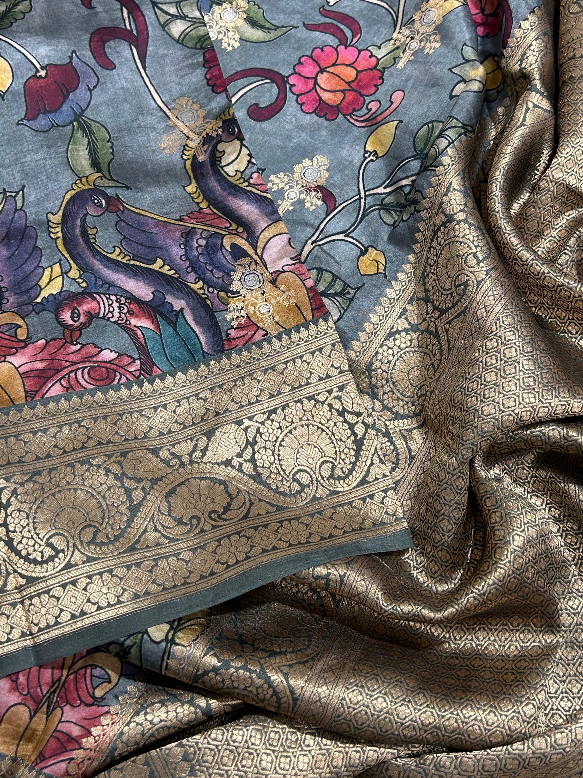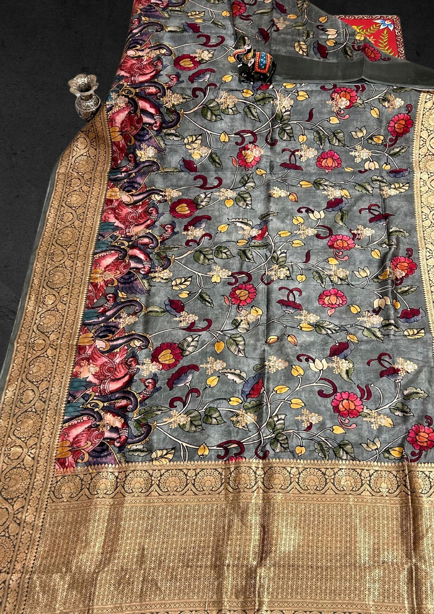 Experience the epitome of luxury and tradition with the Rangrasiya saree, a breathtaking creation from the heart of Varanasi. Crafted from pure mango raw silk, this exquisite handloom saree showcases unparalleled artistry with its intricate pure zari Kadwa work. The vibrant color fusion creates a mesmerizing visual symphony, making it the perfect statement piece for weddings, grand festivals, and any occasion demanding sophisticated Indian elegance.
