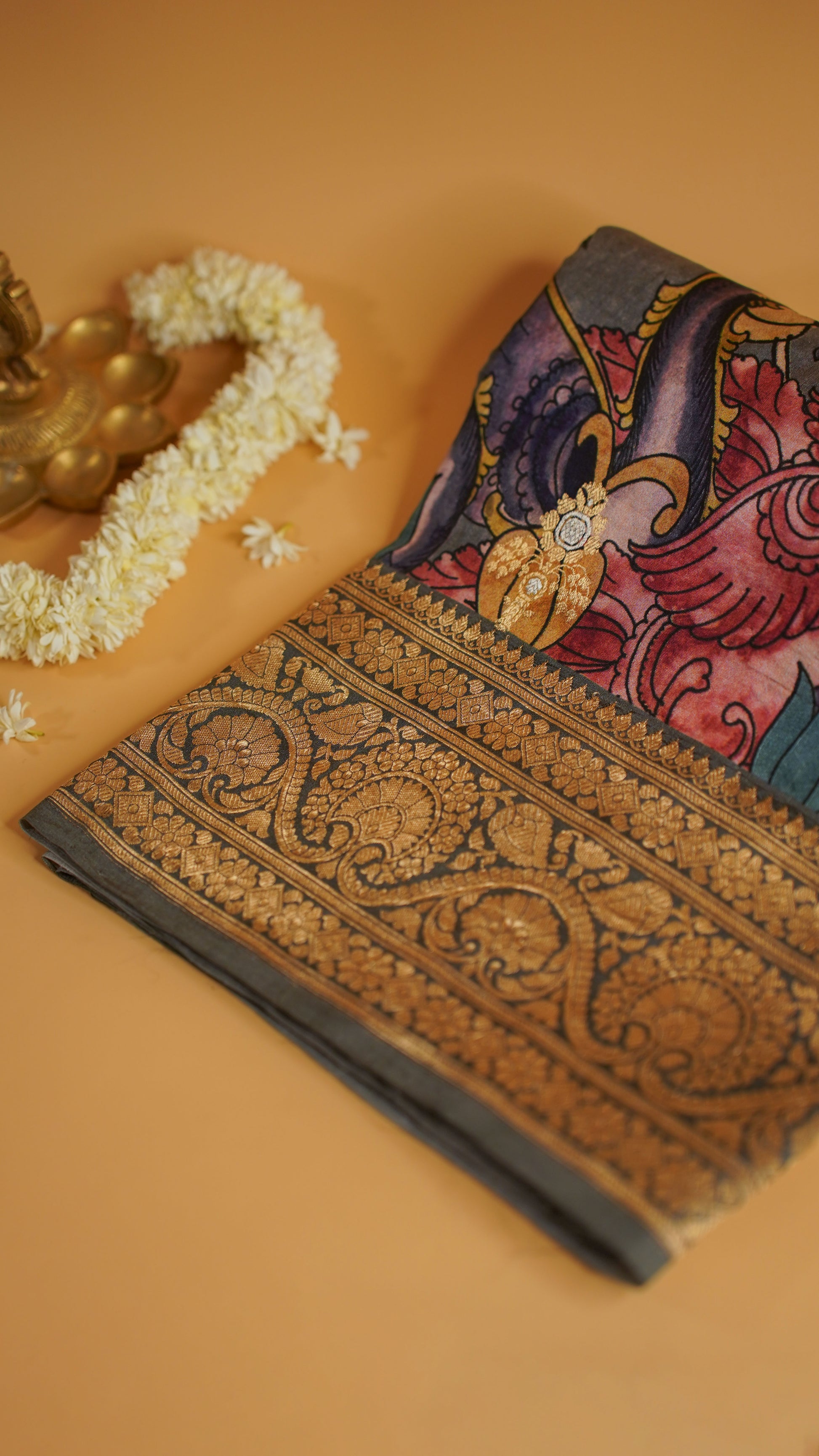 Rangrasiya "Pure Mango Raw Silk With Pure Zari Kadwa Work In Vibrant Color Fusion"