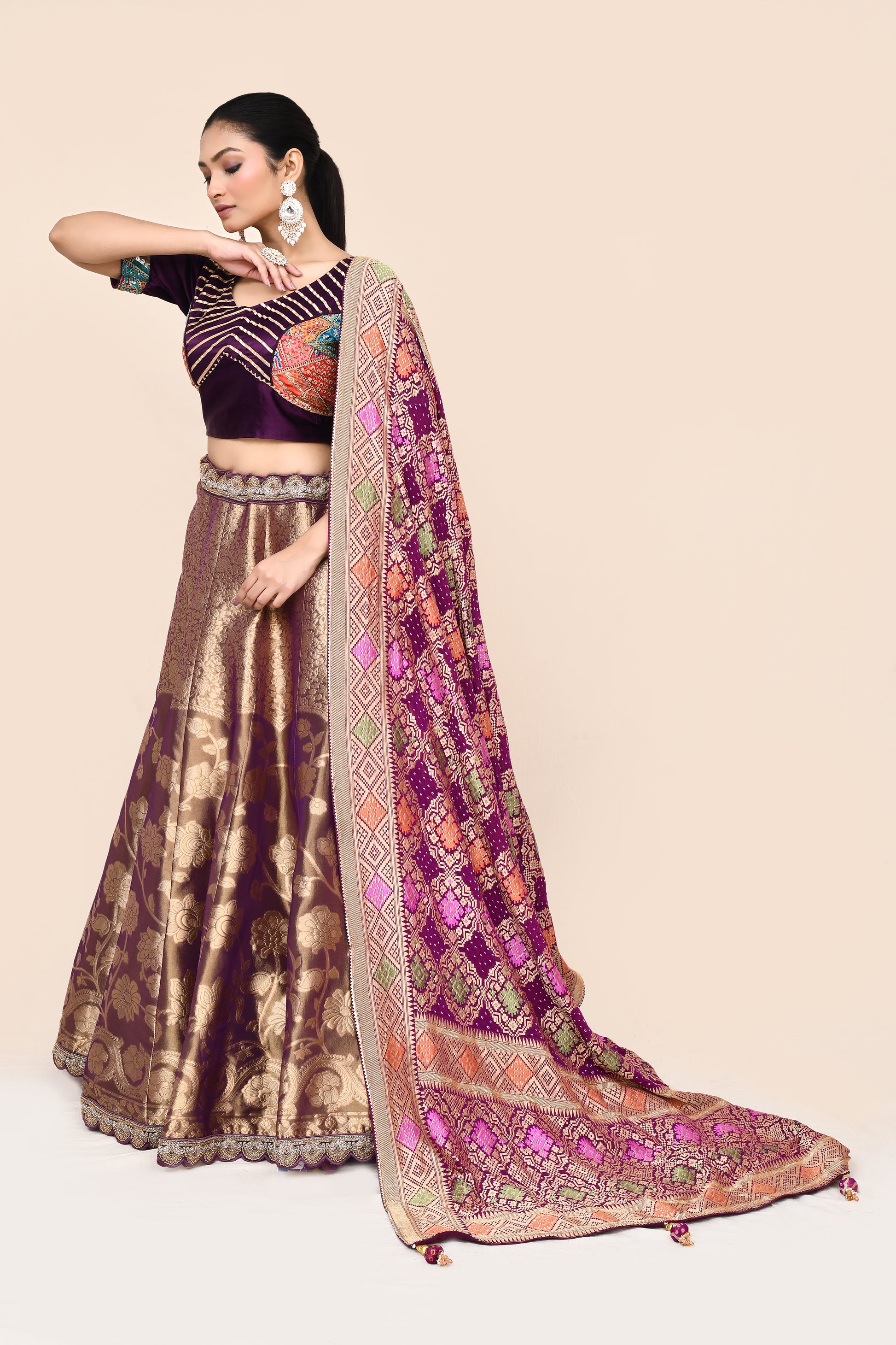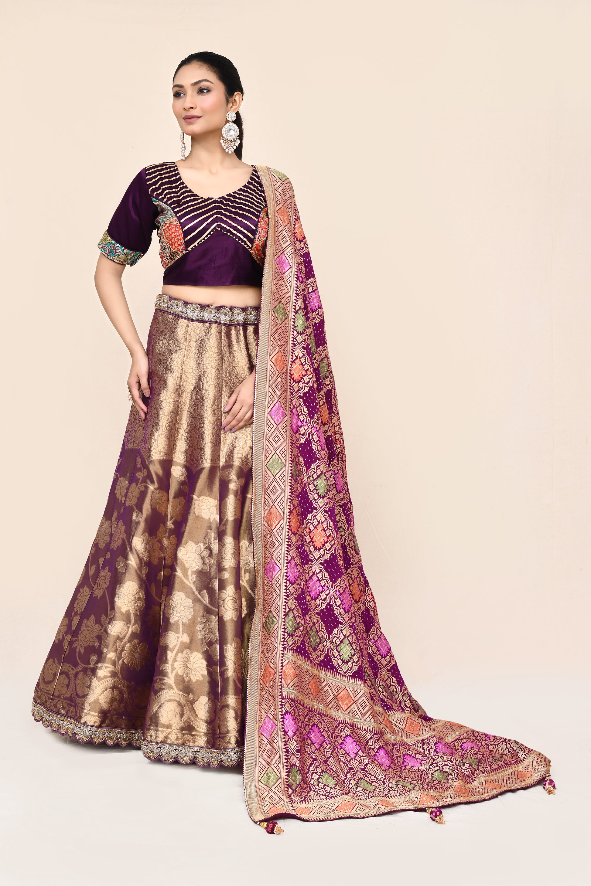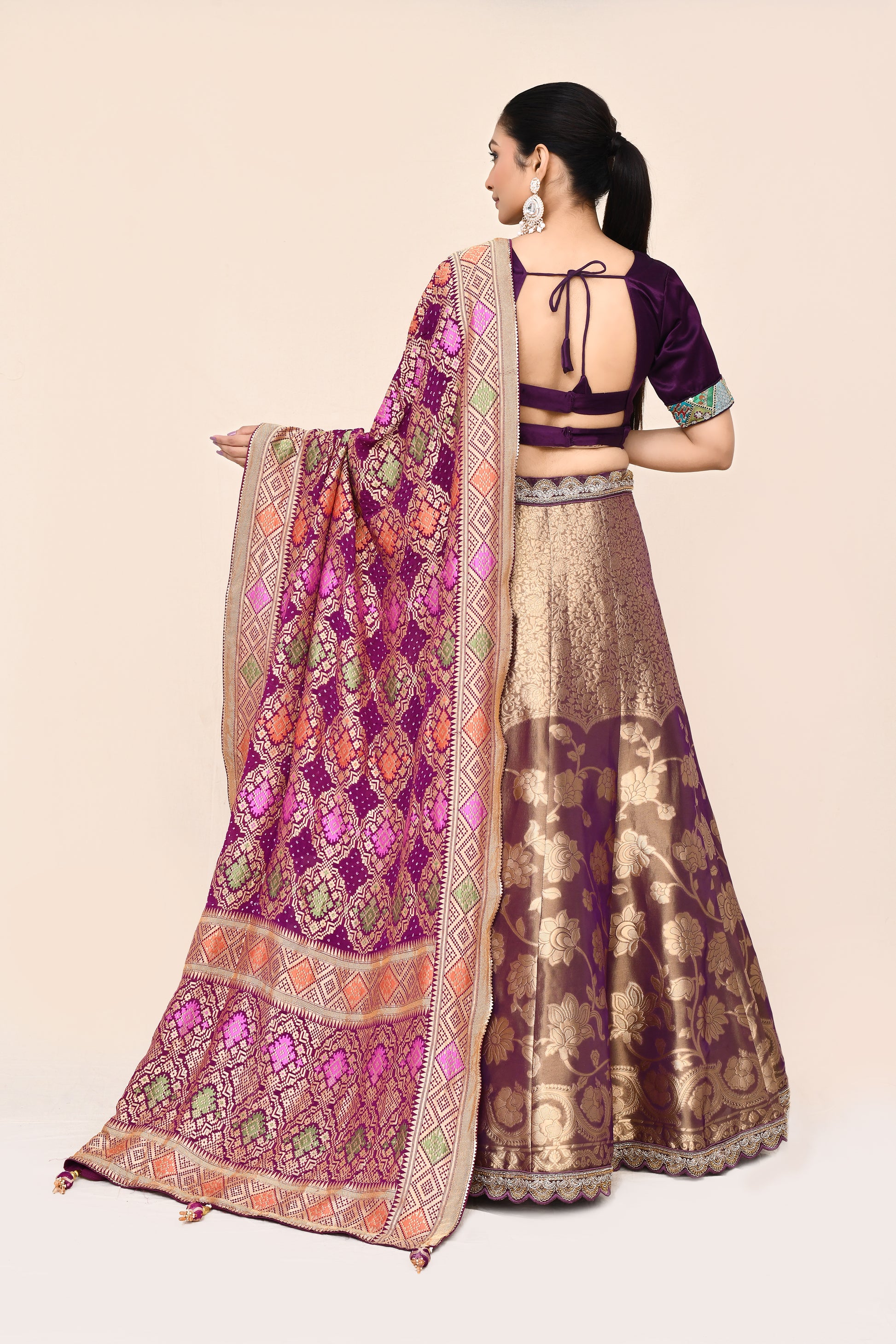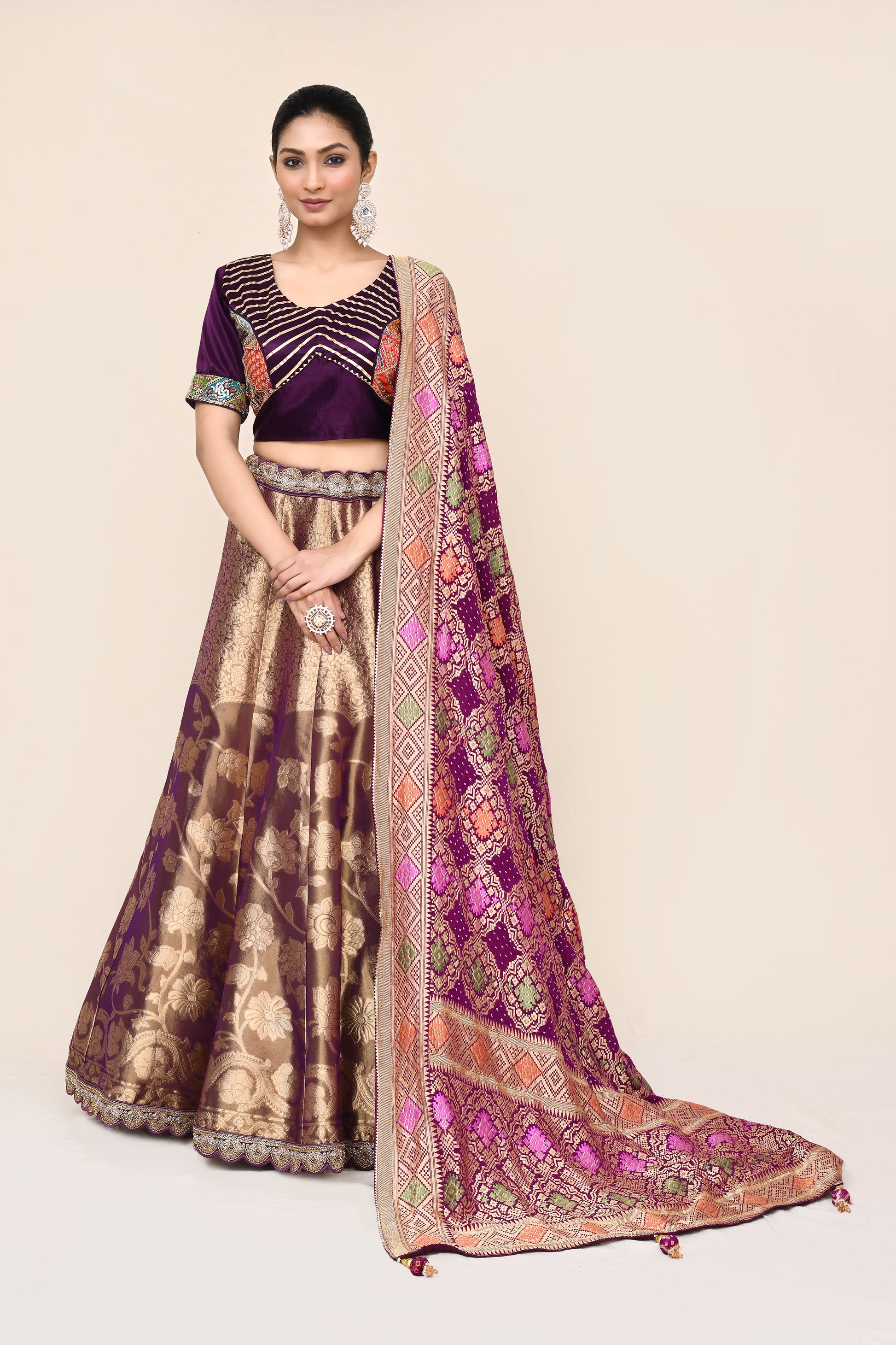 "MANSI 007" Purple Pure Banarasi Tissue Silk Lehenga with Kaddi Georgette Dupatta