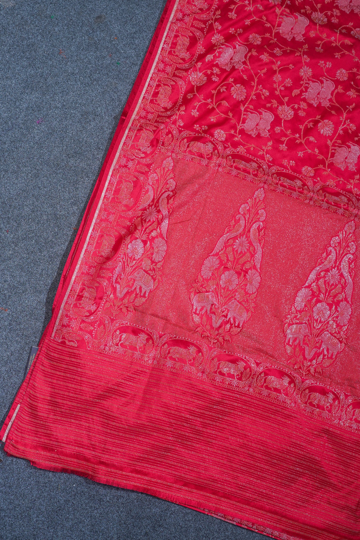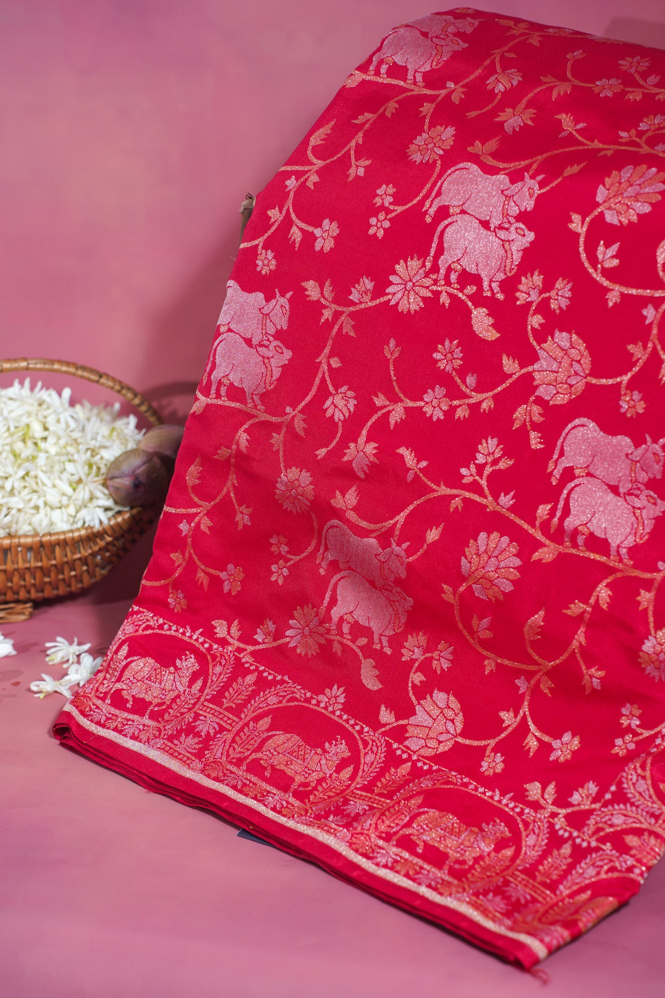 Embrace the grandeur of tradition with the Red Pure Banarasi Silk Saree—a timeless piece that promises to add a touch of elegance and sophistication to any occasion.
