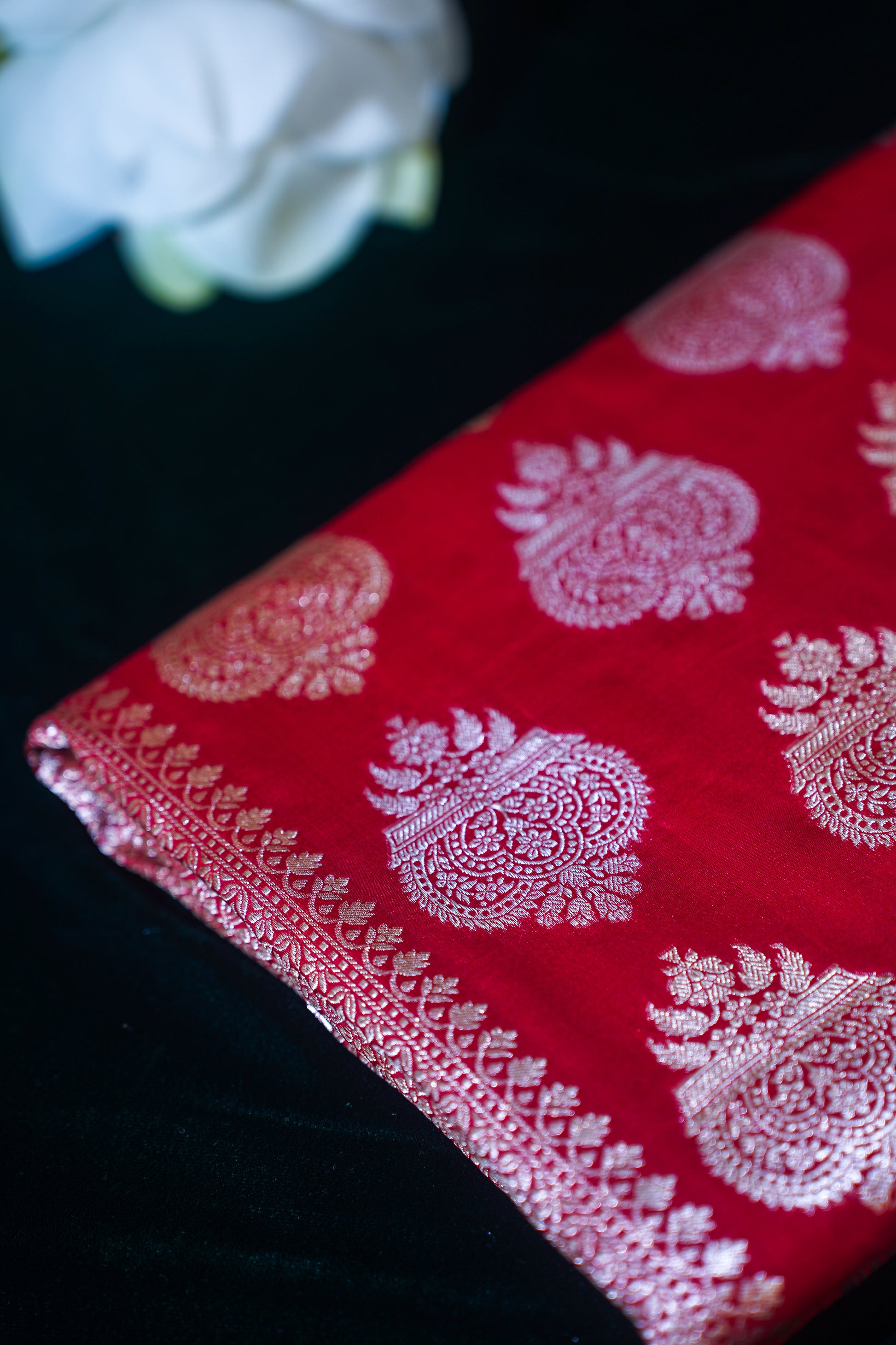 "VIRASAT 128" Red Pure Banarasi Silk Saree