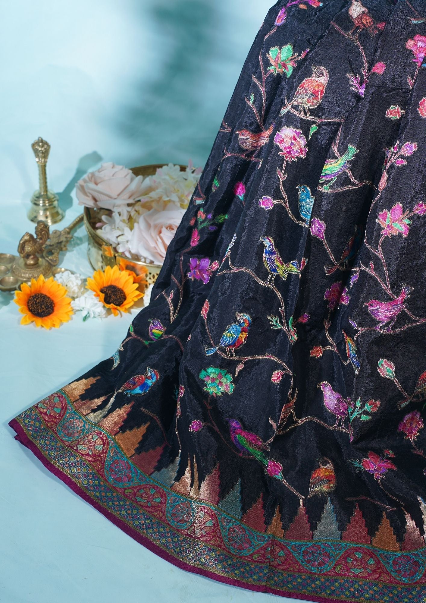 Banarasi Black Meenakari Tussar Silk Saree – A Symphony of Elegance & Artistry