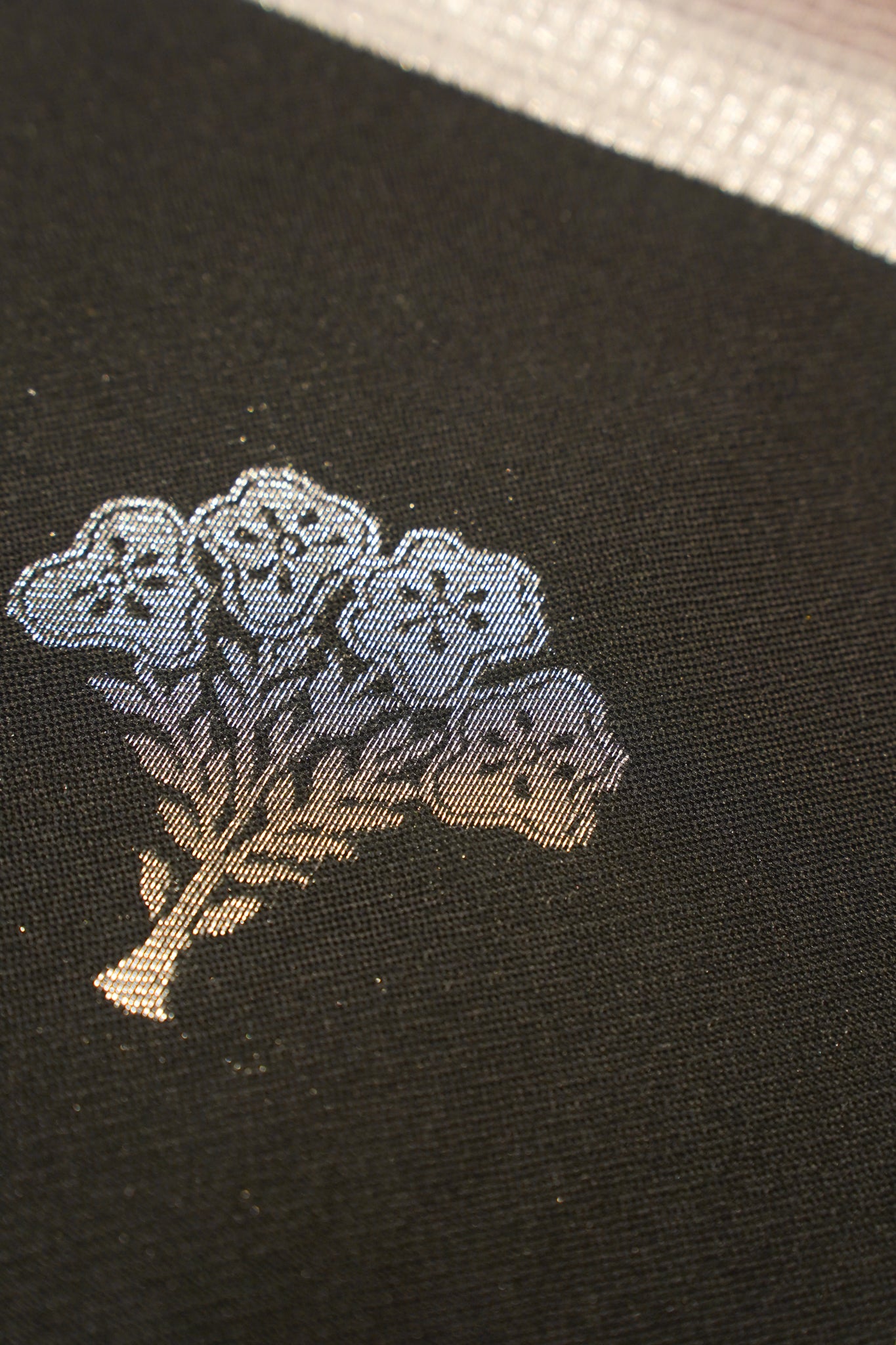 Experience the charm of tradition and luxury with this stunning Banarasi Tanchoi Silk Saree, crafted to make every occasion memorable. The saree features a sophisticated silver woven body in classic Tanchoi weave, giving it a smooth texture and graceful shine. The contrasting black border and pallu are beautifully embellished with silver zari floral and paisley motifs, creating a timeless and royal appeal.