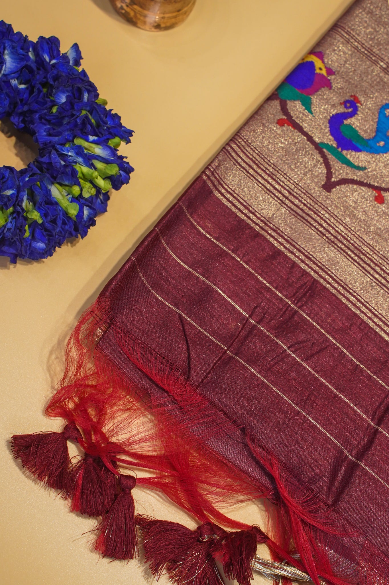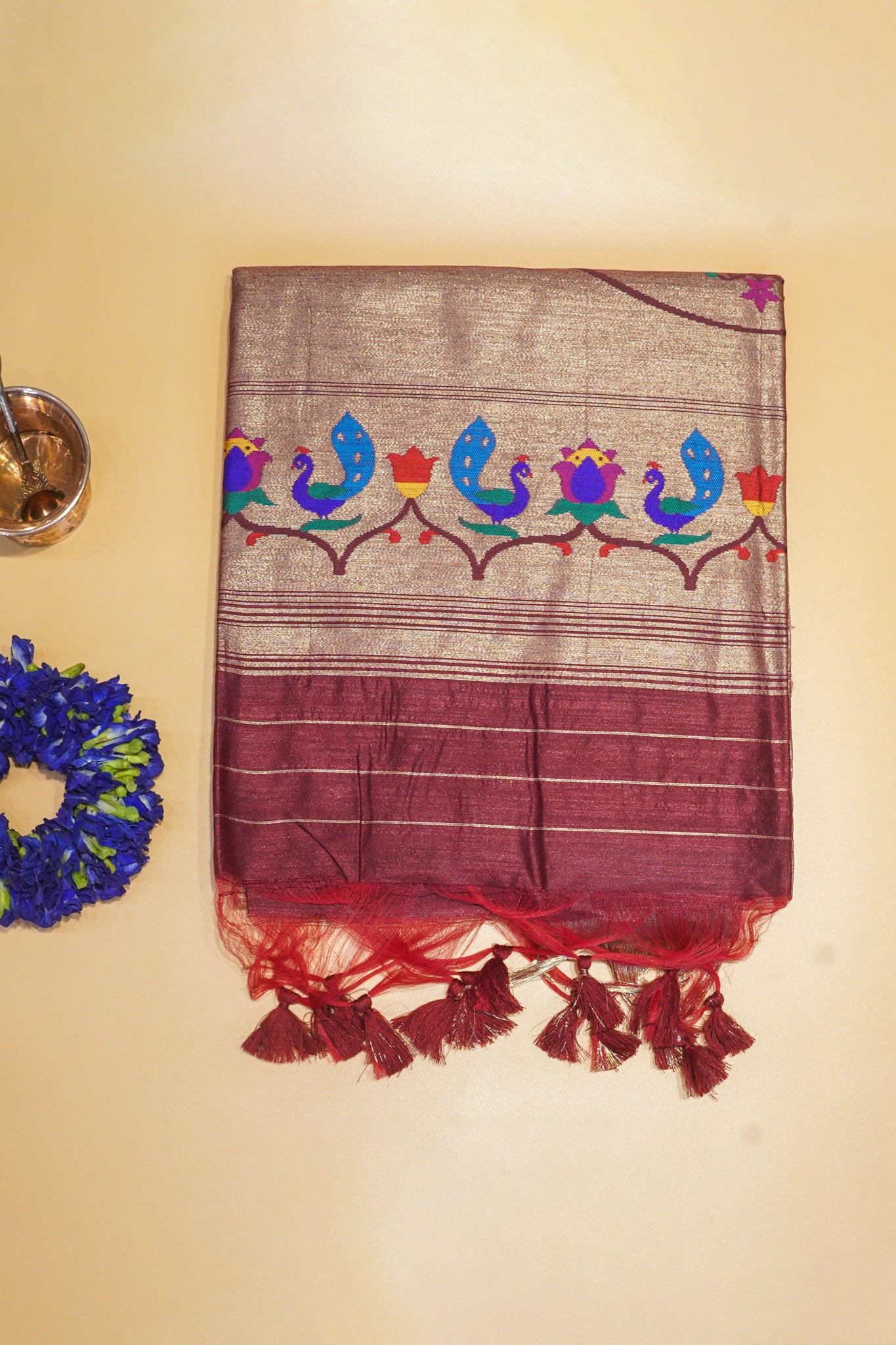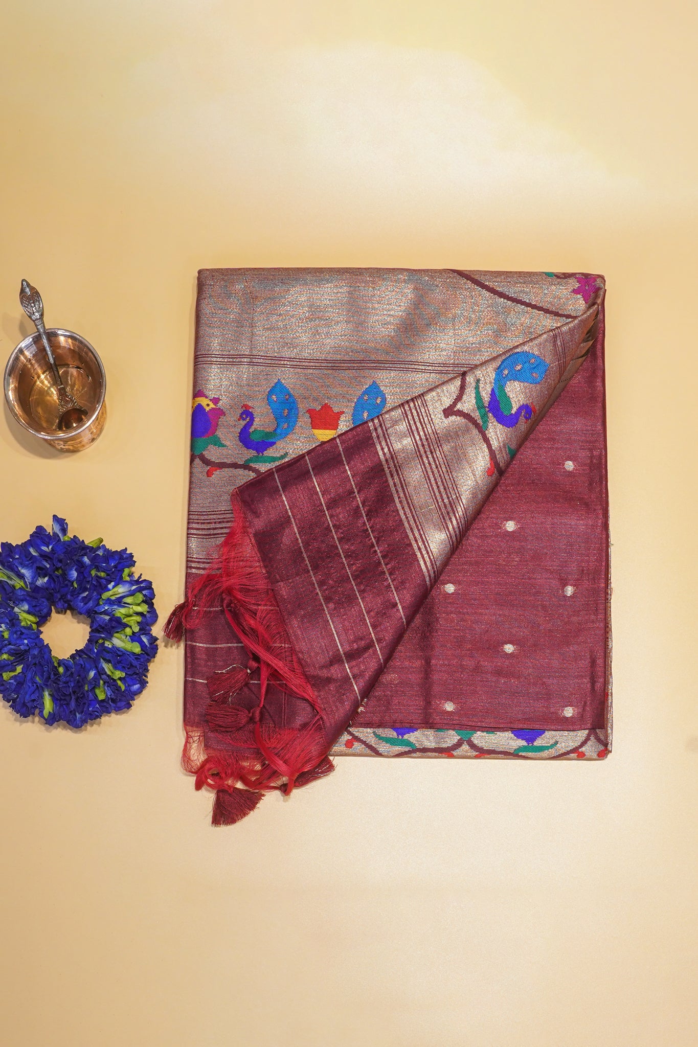 "UTSAV BANARAS 165" Banarasi Maroon Peacock Paithani Saree