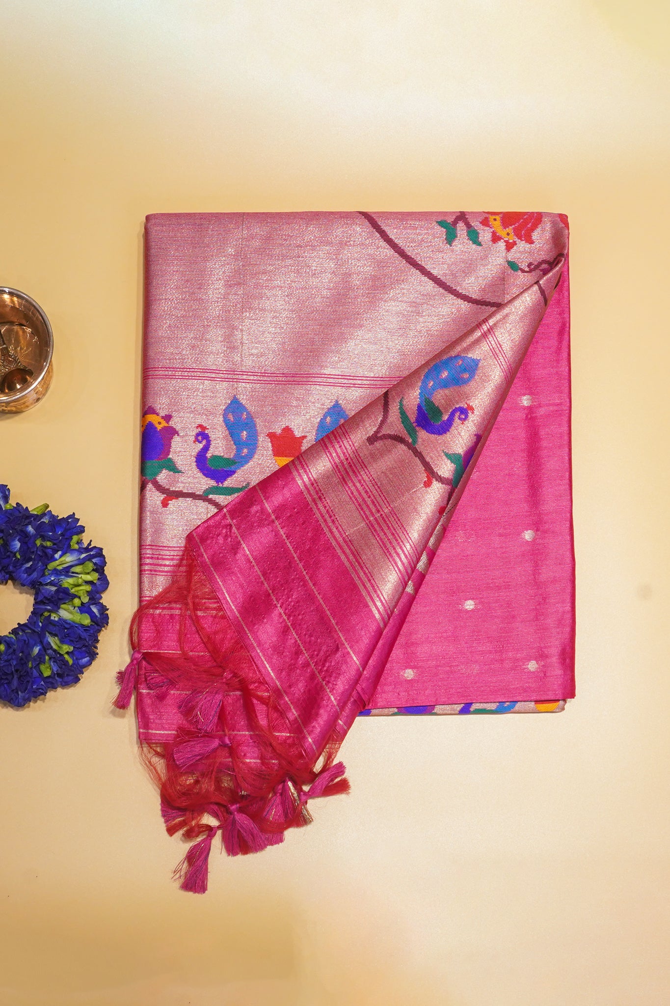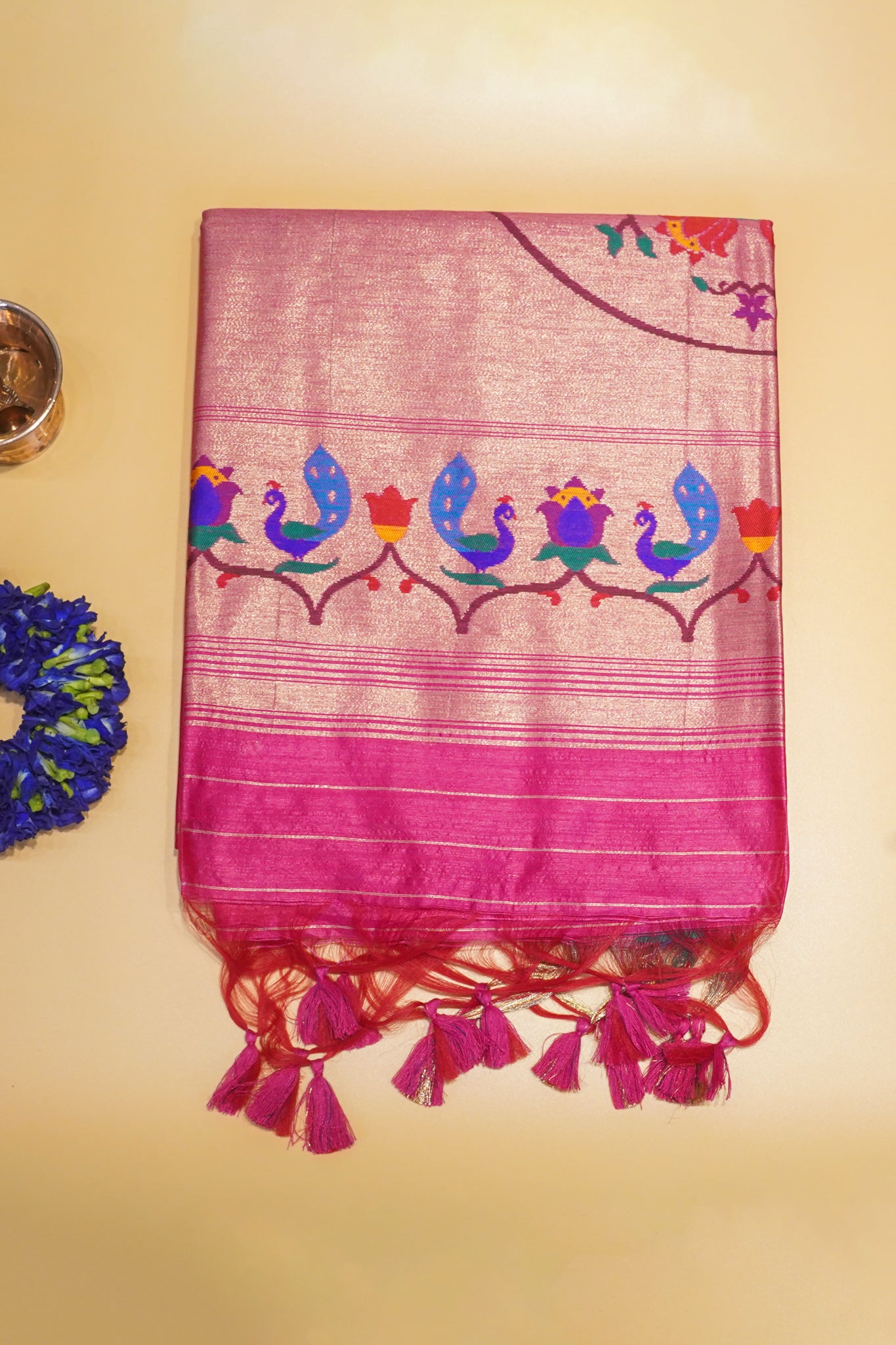 "UTSAV BANARAS 166" Banarasi Elegant Pink Peacock Paithani Saree