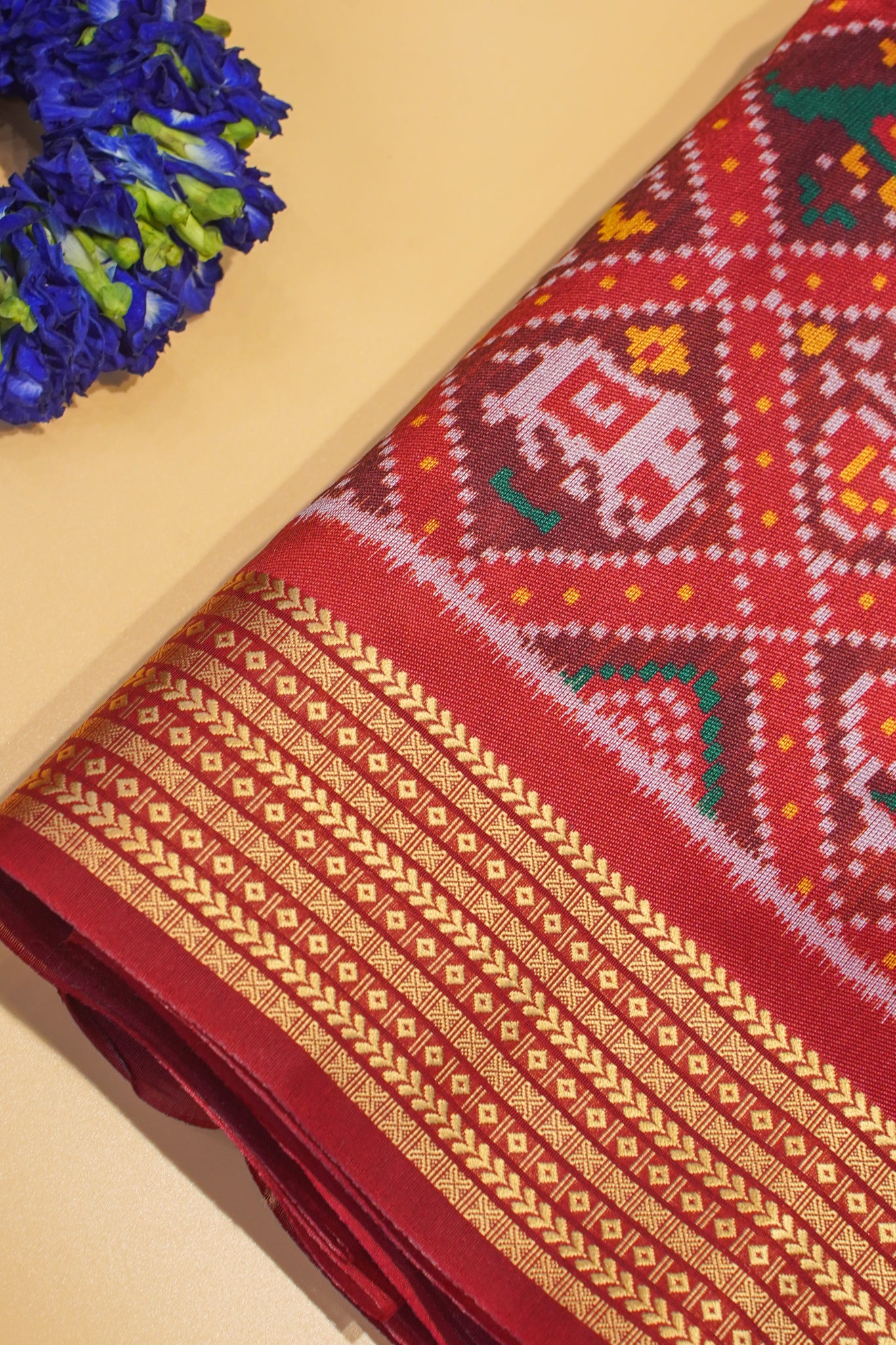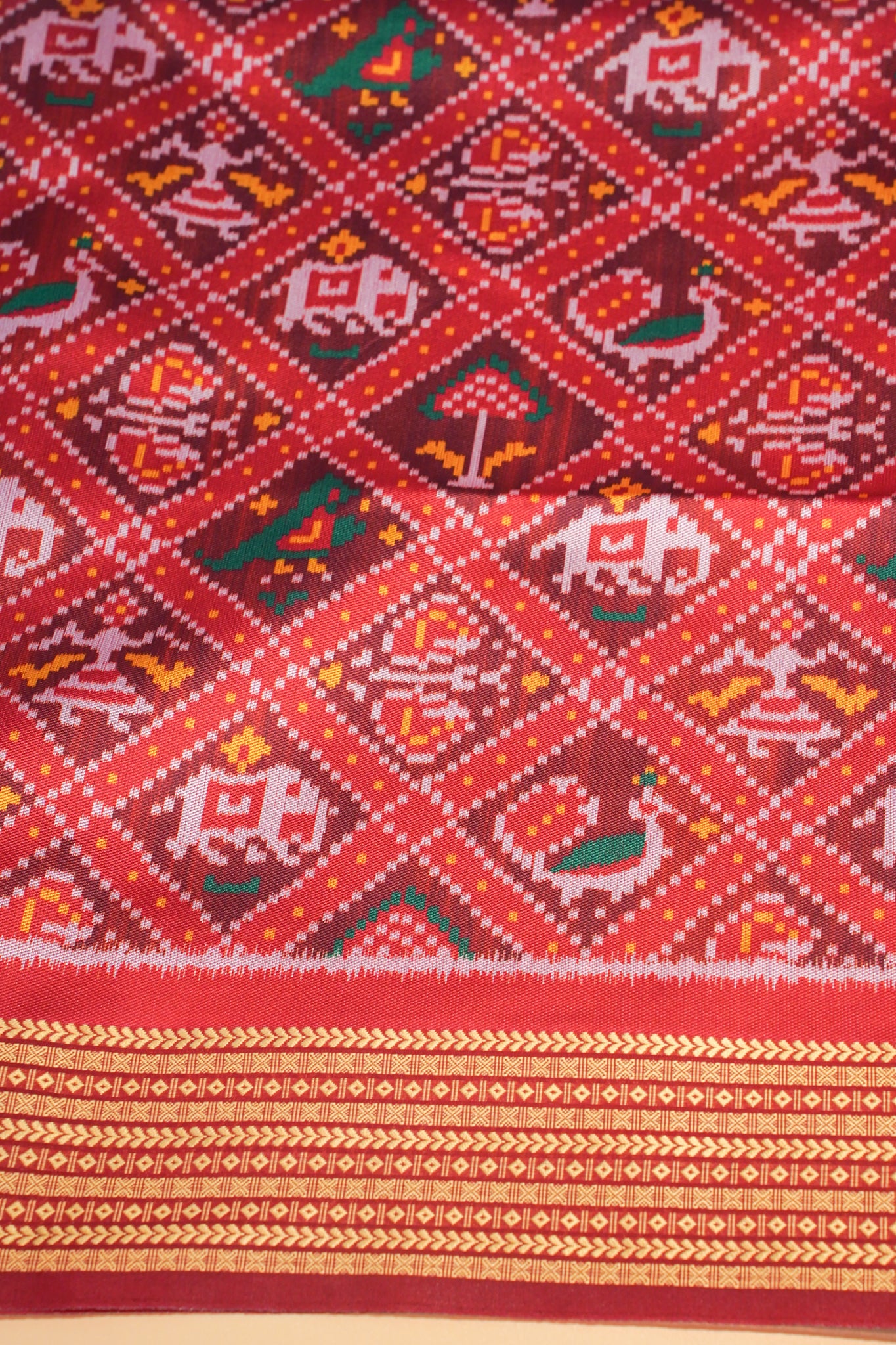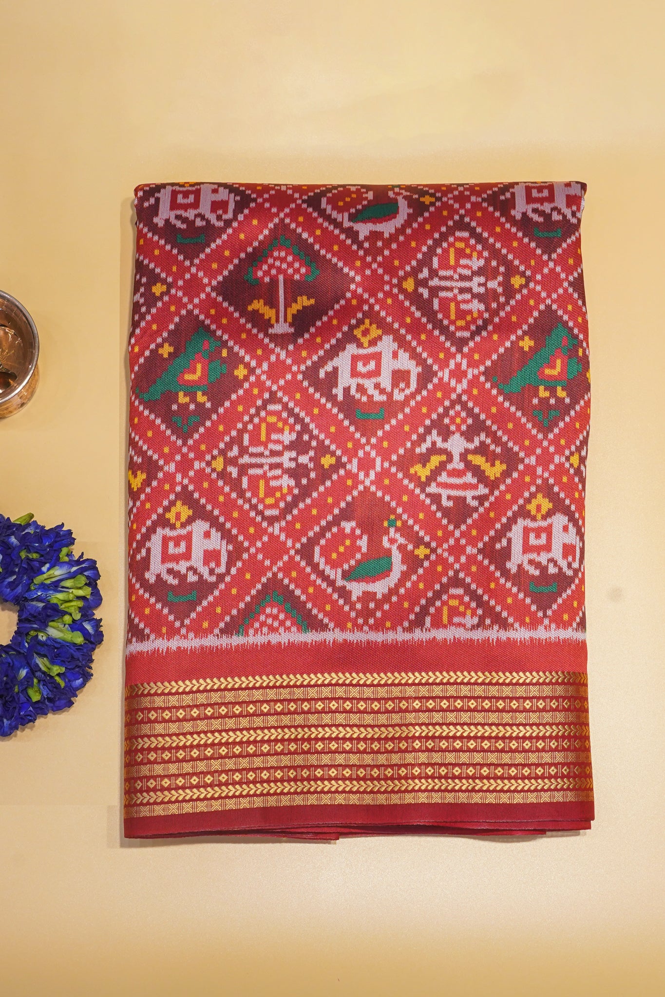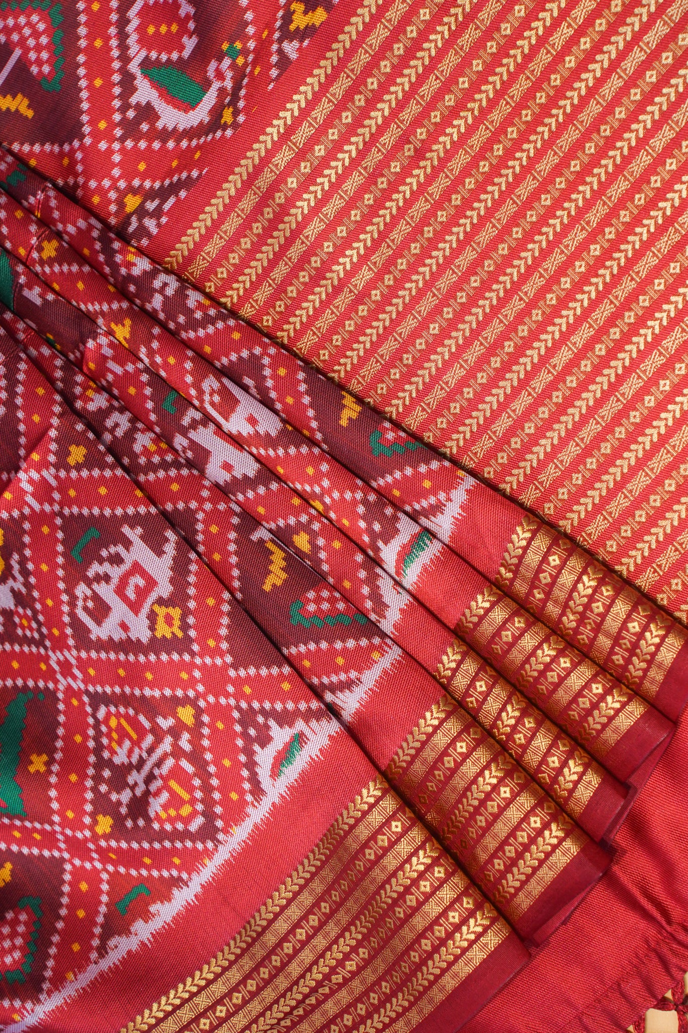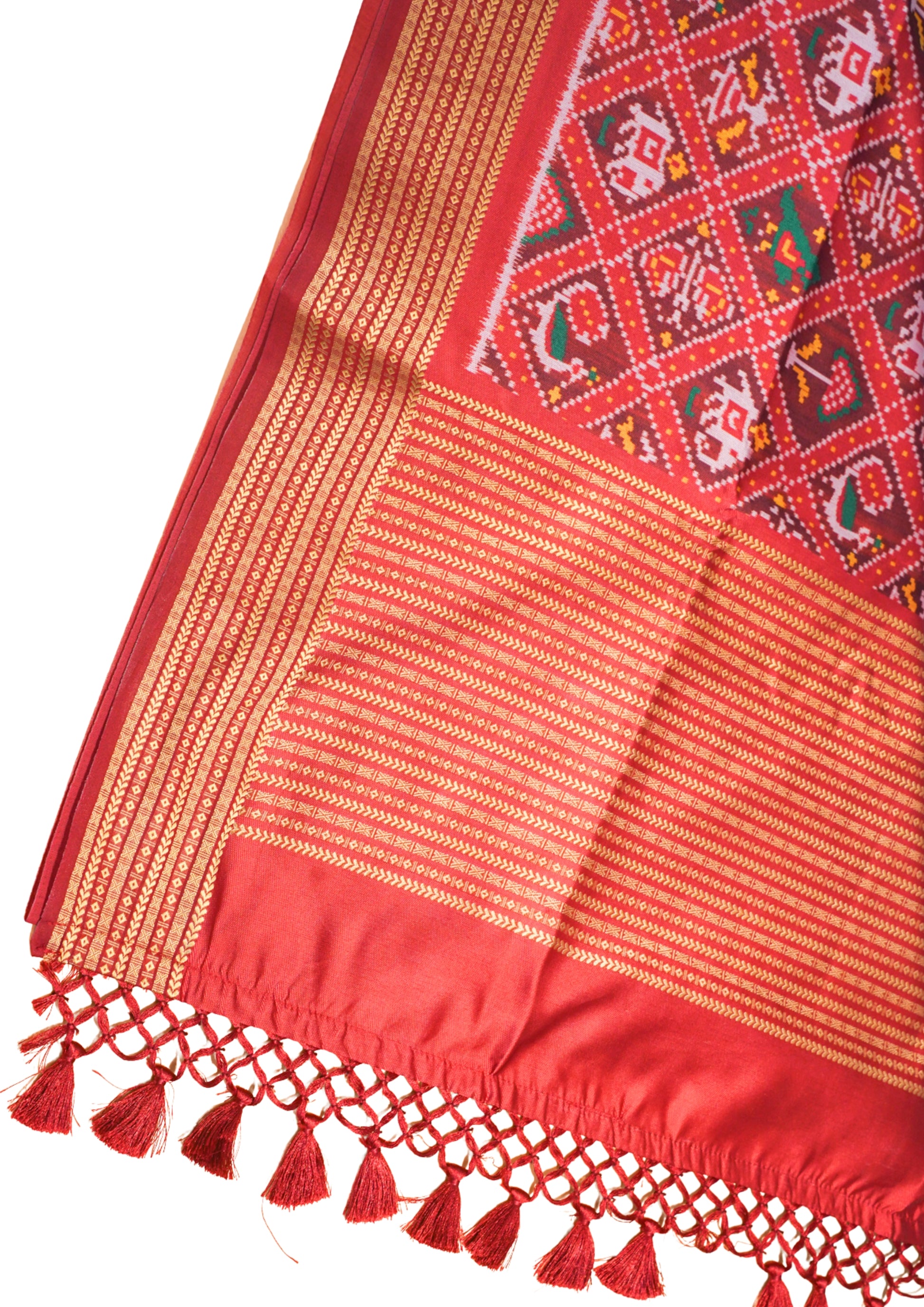- Design: Traditional Patola motifs – elephants, peacocks, dancers & flowers