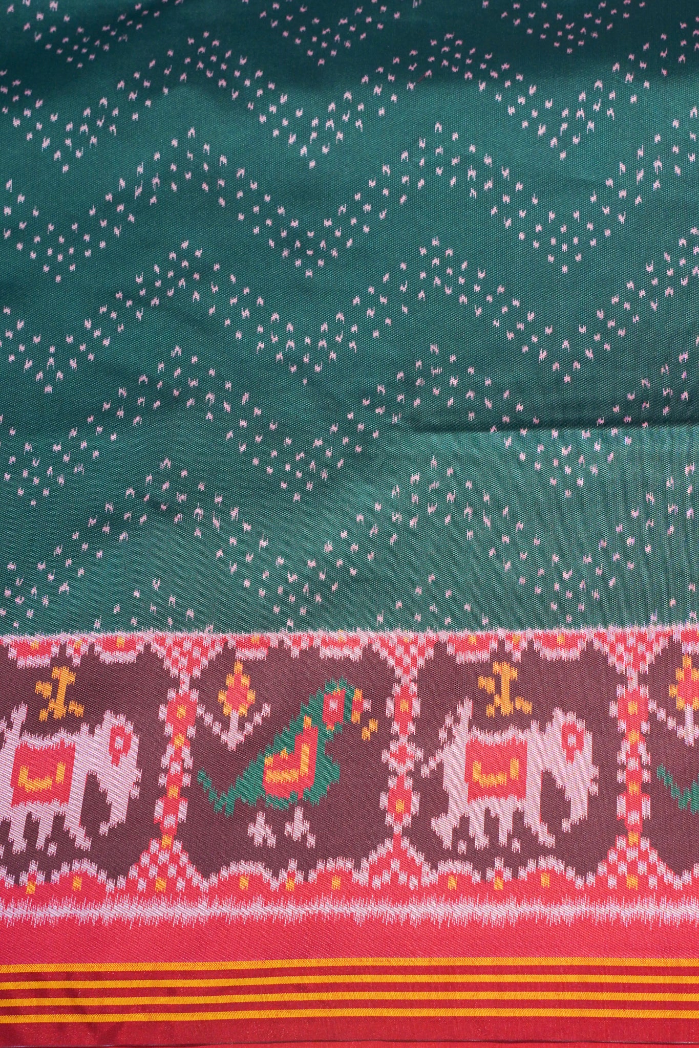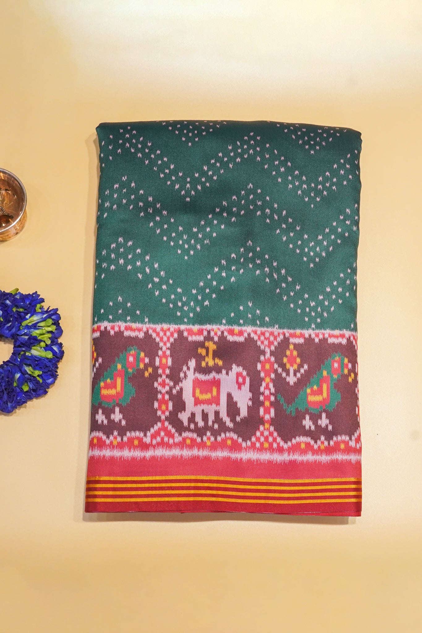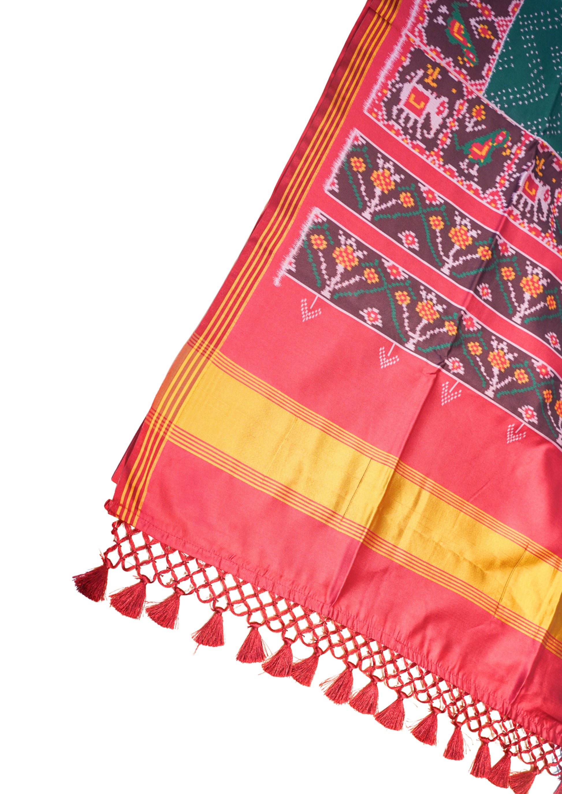 - Design: Traditional Patola motifs – elephants, parrots & geometric patterns
