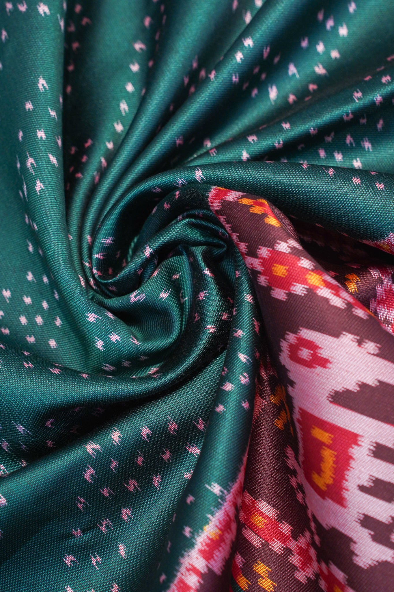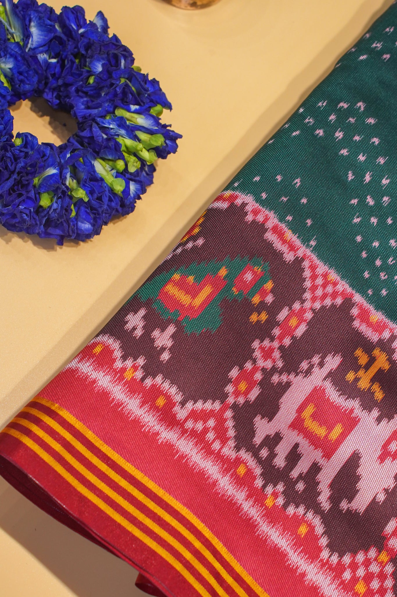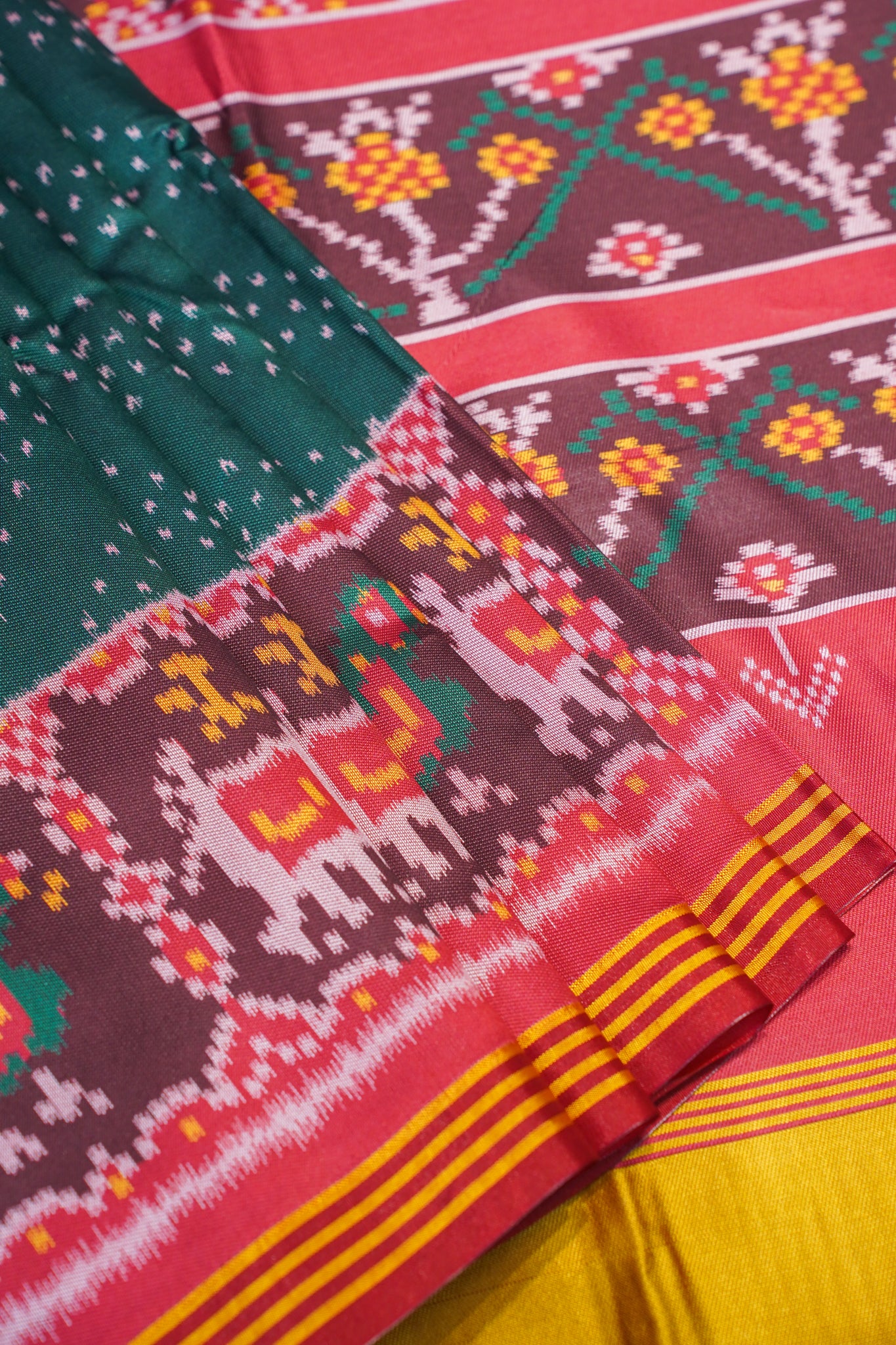 - Design: Traditional Patola motifs – elephants, parrots & geometric patterns