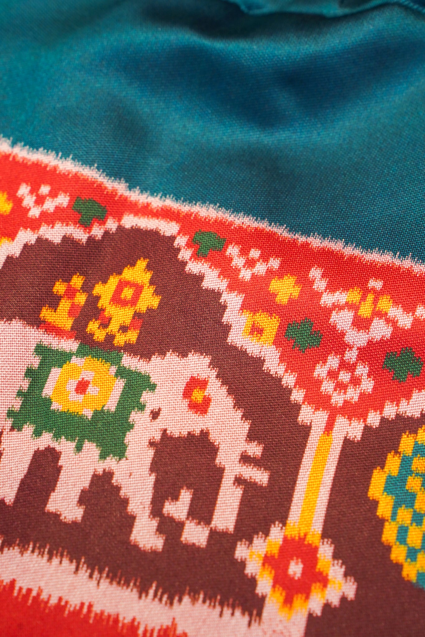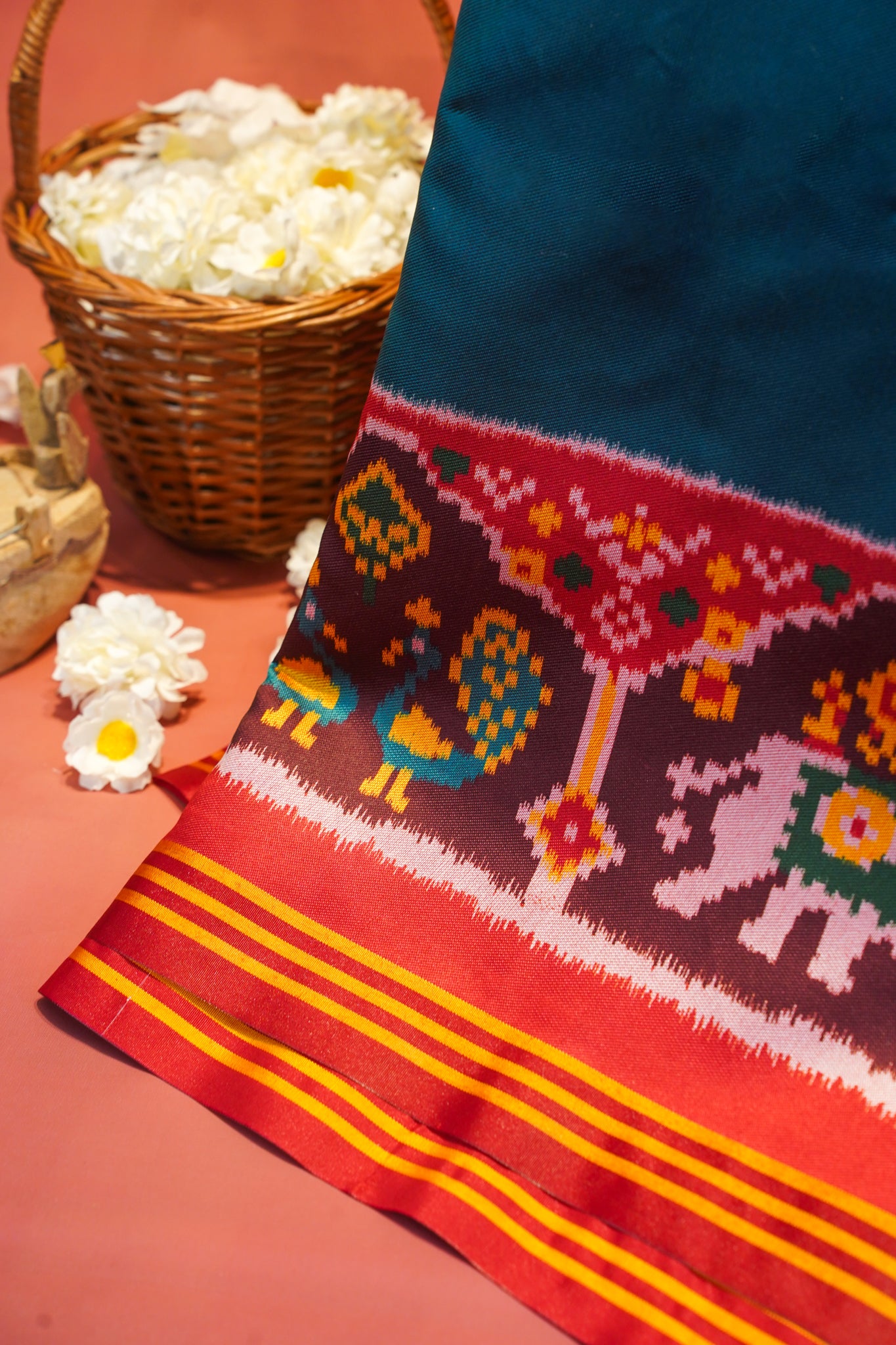 - Colour: Elegant Teal Blue Body with contrast red Patola border
