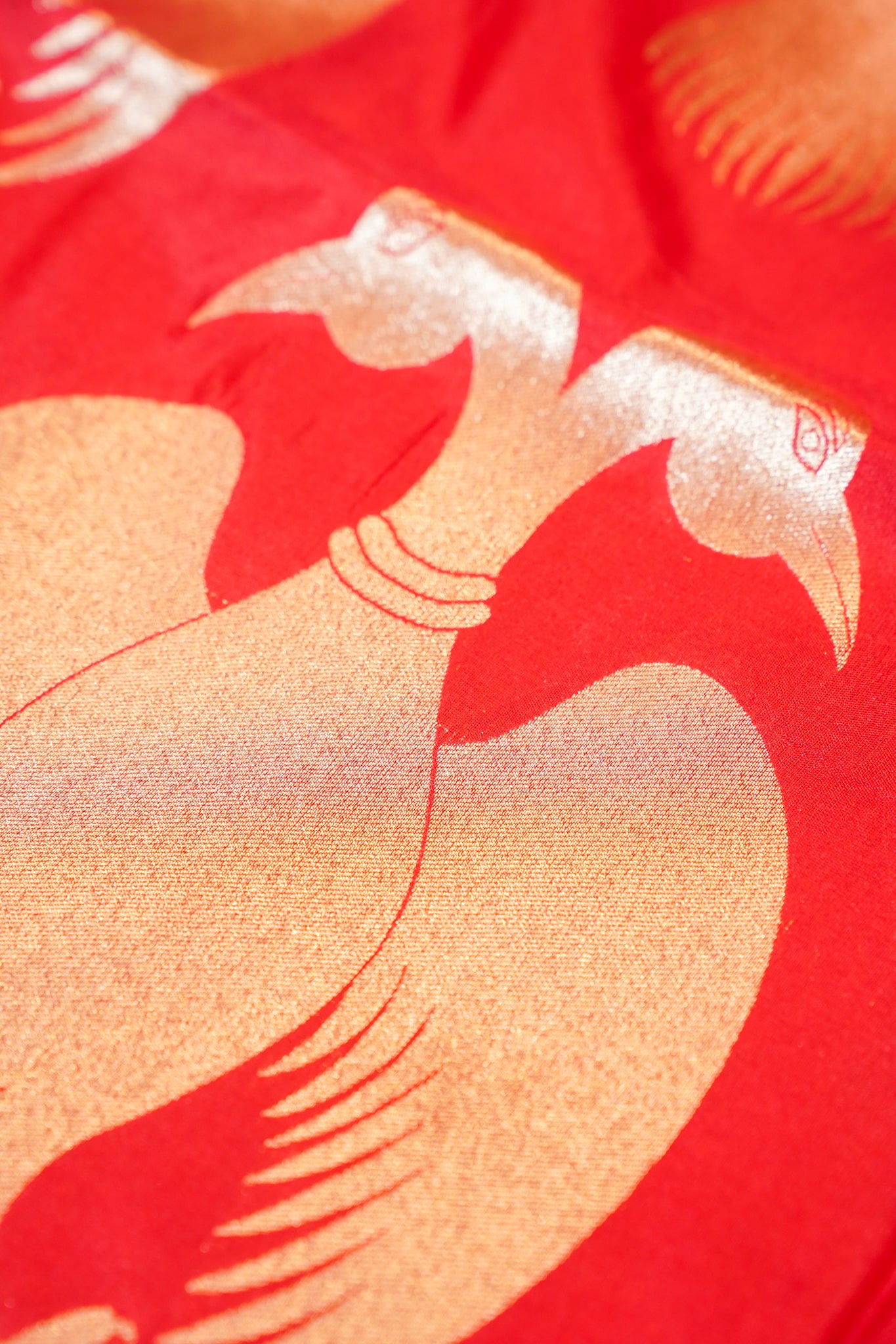 "Virasart 248" Banarasi Red Pure Katan Uppada Silk Saree With Double-Headed Eagle Motif
