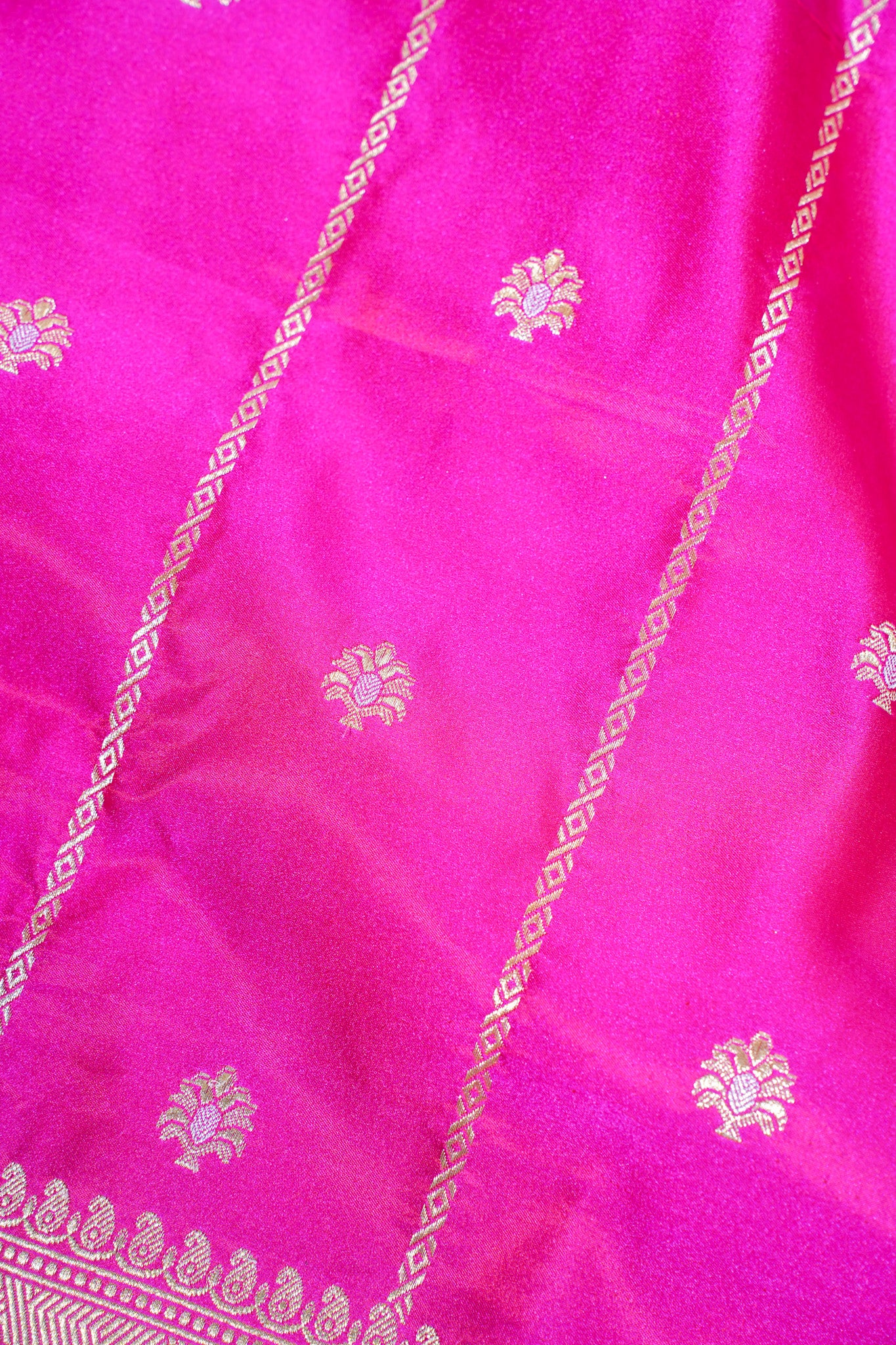 Banarasi Elegance Satin Silk Saree – Radiant Pink with Golden Zari Work